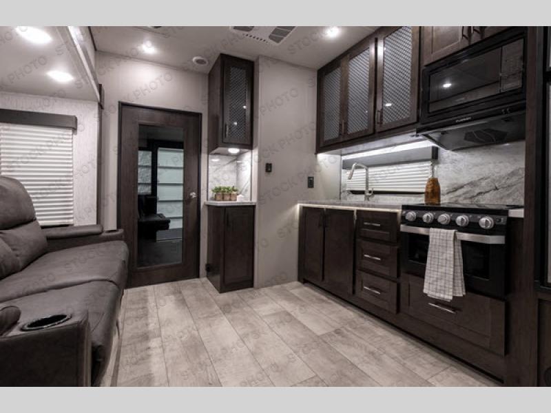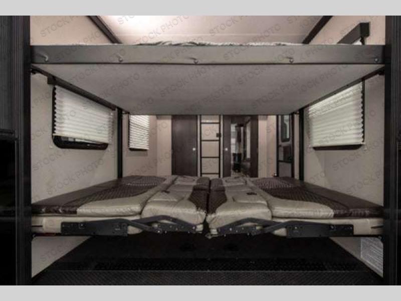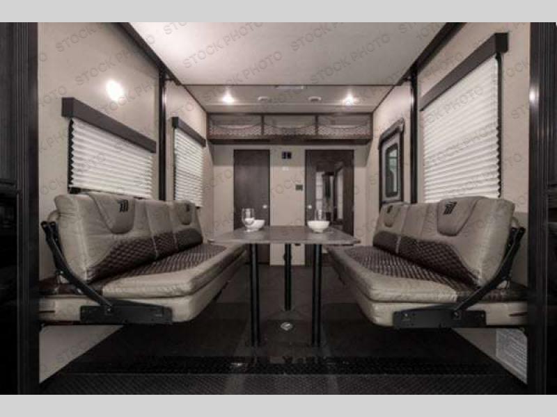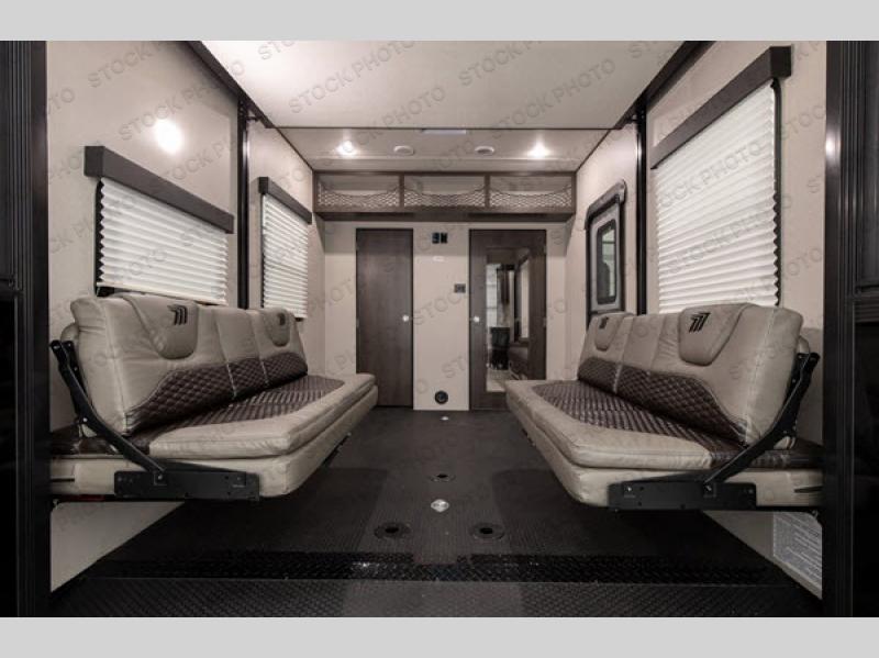 Start your engines for a fun weekend with your toys and your family in this Momentum G-Class toy hauler. The 11' separate garage includes Happi-Jac rollover sofas with a table, a top bunk for the kids, plus a half bath! There is even a second entry door which leads directly into the garage so that you don't have to walk through the entire trailer just to get to your cargo. Now that's helpful! In the front of this unit, you will have your own master suite that has private access to the residential walk-in shower in the dual-entry bathroom. The main living and kitchen area offers everything you need and would want, plus more. This is the one!