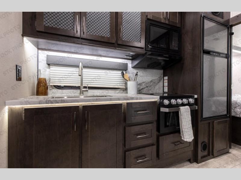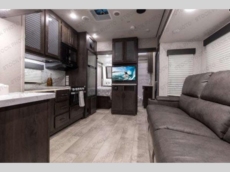 Are you looking for adventure and fun? The Momentum G-Class toy hauler by Grand Design will help you find it! You can explore during any season you choose with the Insulation Package that includes a heated and enclosed underbelly with suspended tanks, a high-capacity furnace, a moisture barrier floor enclosure, and cabinet-mounted heat ducts. Each model includes a 30-gallon fuel station with an interior and exterior gauge, a dovetail rear rend, and 2,500-LB tie-downs anchored into the chassis. Throughout the Momentum G-Class interior, you'll enjoy many comfortable features like large panoramic windows, a shower skylight, USB chargers in the bedroom, and residential cabinetry.