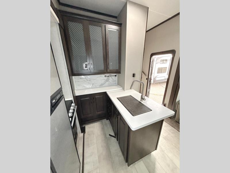 Are you looking for adventure and fun? The Momentum G-Class toy hauler by Grand Design will help you find it! You can explore during any season you choose with the Insulation Package that includes a heated and enclosed underbelly with suspended tanks, a high-capacity furnace, a moisture barrier floor enclosure, and cabinet-mounted heat ducts. Each model includes a 30-gallon fuel station with an interior and exterior gauge, a dovetail rear rend, and 2,500-LB tie-downs anchored into the chassis. Throughout the Momentum G-Class interior, you'll enjoy many comfortable features like large panoramic windows, a shower skylight, USB chargers in the bedroom, and residential cabinetry.