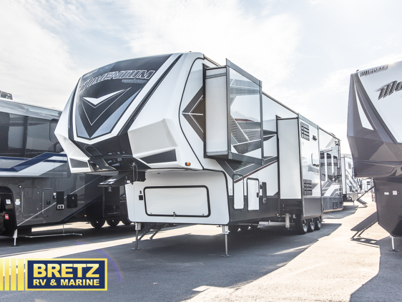 Live big and play even harder with any one of these Momentum M-Class toy hauler fifth wheels by Grand Design! The CRE3000 MORryde® suspension system improves its towability with a smoother tow and better protects from damaging road shock. Unlike many other toy haulers, Momentum features an exclusive garage floor design with an R-40 triple insulation in the garage floors and a Weather-Tek insulation throughout the roof, main floor, and side walls. Pump up the volume and shake things up with the optional Rockford Fosgate speaker package that comes with a 12" subwoofer and a 300W amp. You will also enjoy the fully enclosed fuel pump station, the door-side exterior spray port, and the four mandatory packages full of extra features that will make your next camping adventure luxurious!