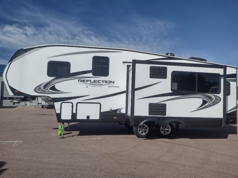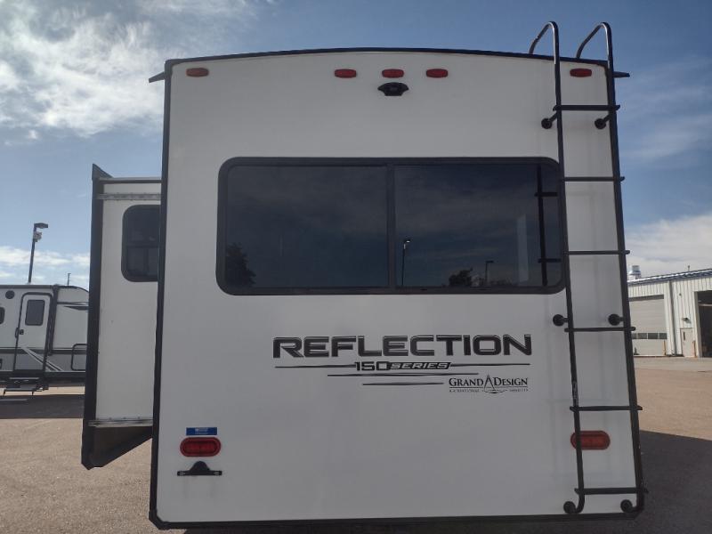 Each Reflection 150 Series fifth wheel by Grand Design allows you to use your half-ton and short-bed truck to tow thanks to the 90-degree turn radius pin box. The Universal All-In-One docking station, the LP Quick Connect, and the "One-Touch" automatic leveling system will make setting up and packing up easy for those weekenders or full-timers that like to move around to see the countryside. Inside, you will love the Gunstock fixtures and hardware, the louvered tread steps to the bedroom, the large panoramic windows, plus the many features in the mandatory packages. It's time to reflect on your wise choice, so choose a Reflection 150 Series today!