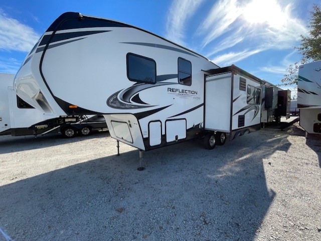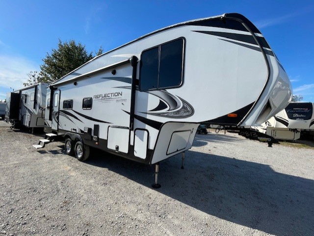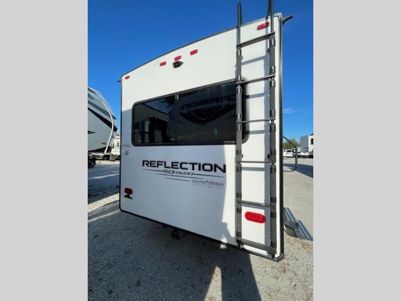 Each Reflection 150 Series fifth wheel by Grand Design allows you to use your half-ton and short-bed truck to tow thanks to the 90-degree turn radius pin box. The Universal All-In-One docking station, the LP Quick Connect, and the "One-Touch" automatic leveling system will make setting up and packing up easy for those weekenders or full-timers that like to move around to see the countryside. Inside, you will love the Gunstock fixtures and hardware, the louvered tread steps to the bedroom, the large panoramic windows, plus the many features in the mandatory packages. It's time to reflect on your wise choice, so choose a Reflection 150 Series today!