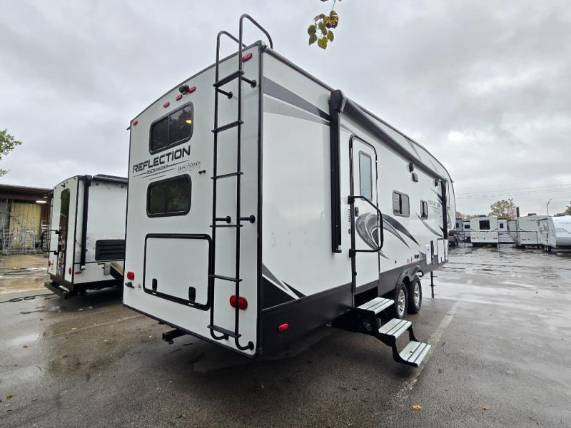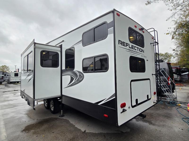 Each Reflection 150 Series fifth wheel by Grand Design allows you to use your half-ton and short-bed truck to tow thanks to the 90-degree turn radius pin box. The Universal All-In-One docking station, the LP Quick Connect, and the "One-Touch" automatic leveling system will make setting up and packing up easy for those weekenders or full-timers that like to move around to see the countryside. Inside, you will love the Gunstock fixtures and hardware, the louvered tread steps to the bedroom, the large panoramic windows, plus the many features in the mandatory packages. It's time to reflect on your wise choice, so choose a Reflection 150 Series today!