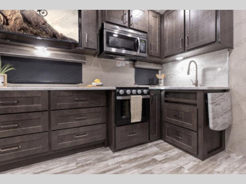 Chef-Ready Kitchen – A full kitchen with 8-cu. ft. refrigerator, three-burner range, and a flip-up countertop extension for extra prep space. Don’t forget the outdoor kitchen for grilling under the stars.