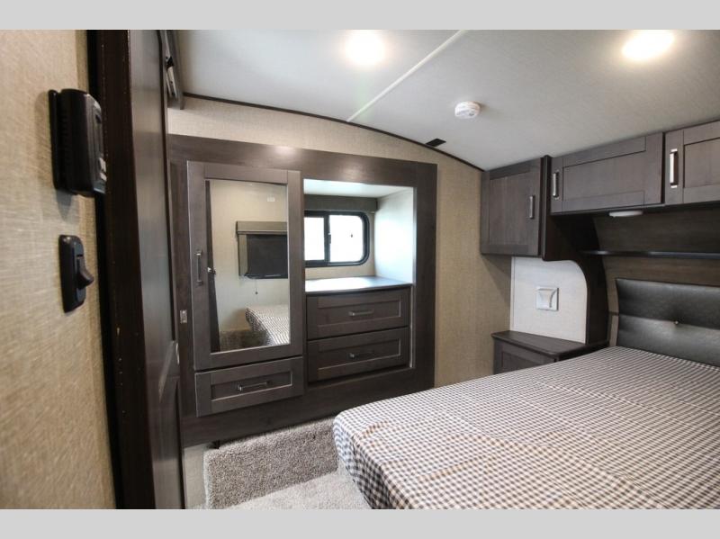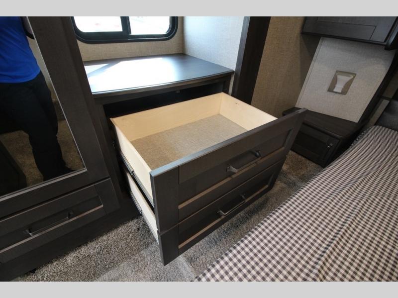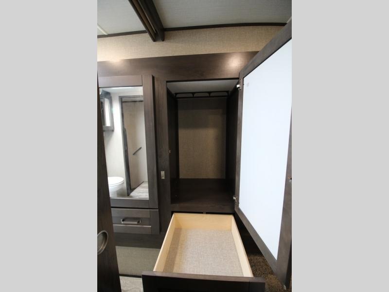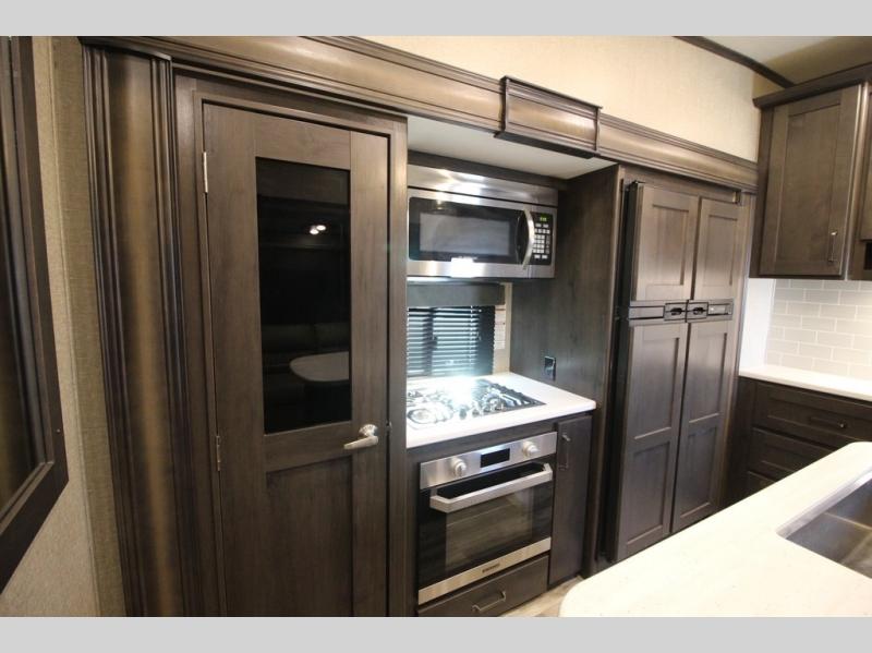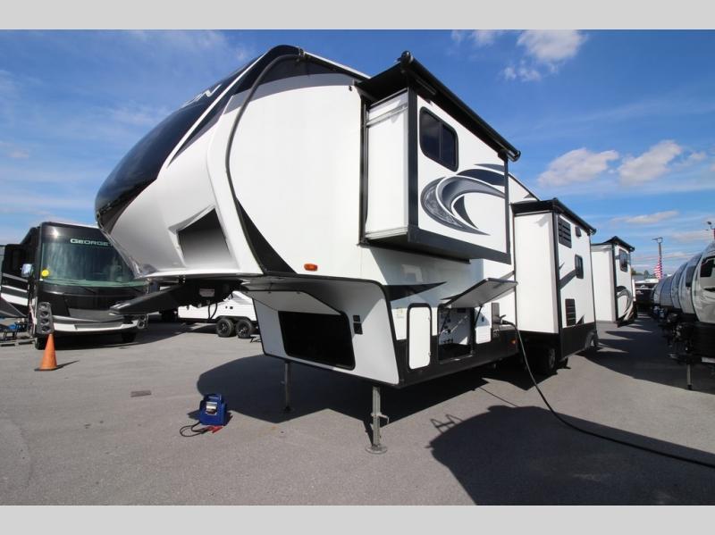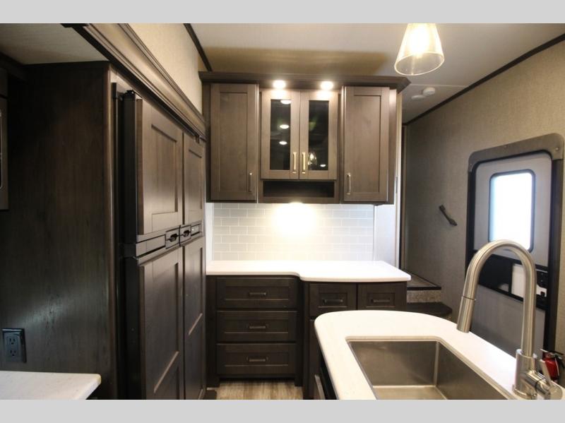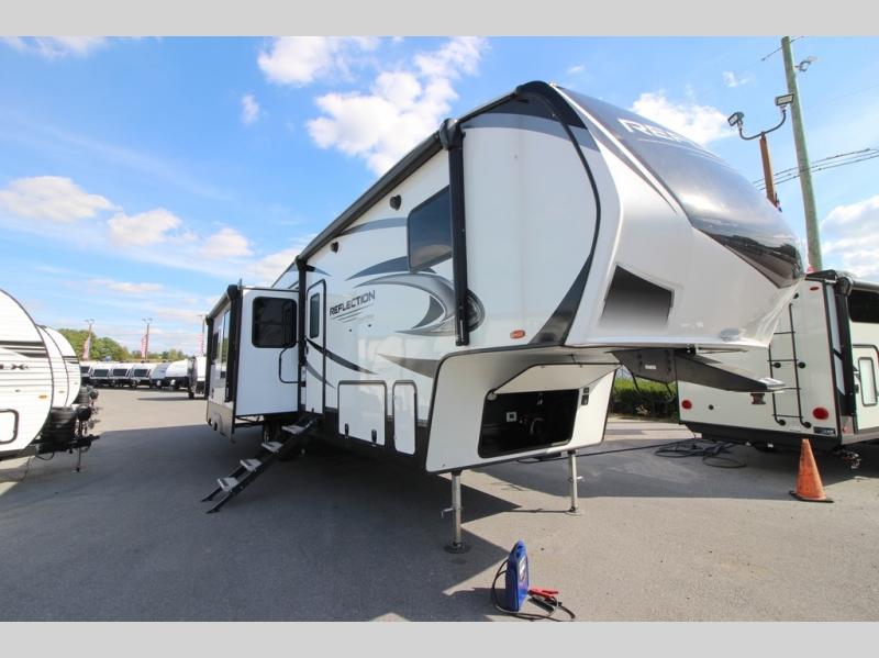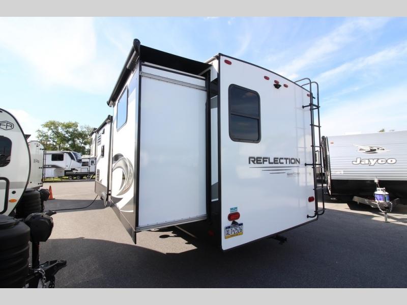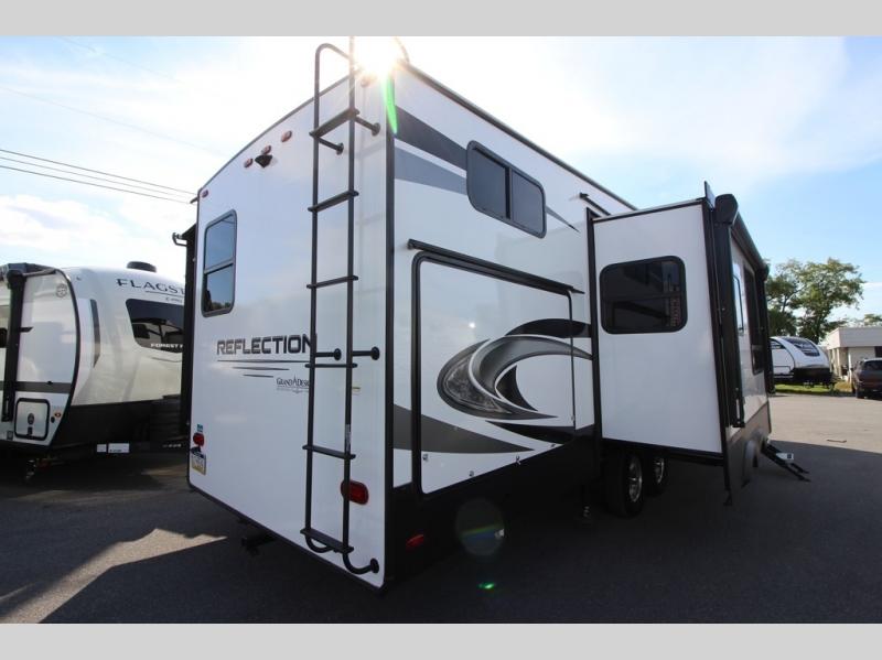 Luxury, value, and towability is what you will find in every one of these Reflection fifth wheels and travel trailers by Grand Design! The mandatory Arctic 4-Seasons Protection package allows you to camp all year round with the 35k BTU high capacity furnace, the Thermofoil insulation, and the heated and enclosed underbelly with circulating heat. Their gourmet kitchens have everything you will need to create home cooked meals including a deep, seated stainless steel sink with a high rise faucet with a pull down sprayer to make clean up easier too. The ductless flooring means there are no floor vent covers to collect dirt or debris, and the universal docking station is an all in one heated location with an EZ winterization system. Easily open the pivoting AXISTEP which will help eliminate debris and moisture from falling inside the unit and also goes all the way down to the ground to make it more stable when entering. Start your next camping trip in true luxury!