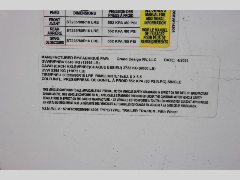 Used 2021 Grand Design Reflection 311BHS Fifth Wheel