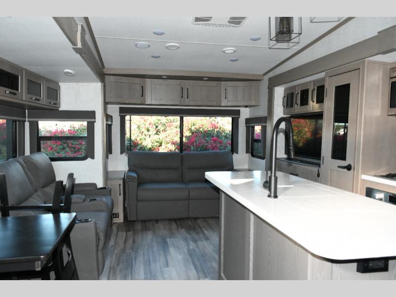 The Reflection 337RLS is ideal for RVers who want luxury, comfort, and four-season capability in a towable fifth wheel. The rear living layout creates a true residential living room, while the gourmet kitchen and spacious bedroom make long trips effortless. With premium construction, superior insulation, and thoughtful storage throughout, this Reflection is perfect for extended adventures, seasonal camping, or full-time RV living.