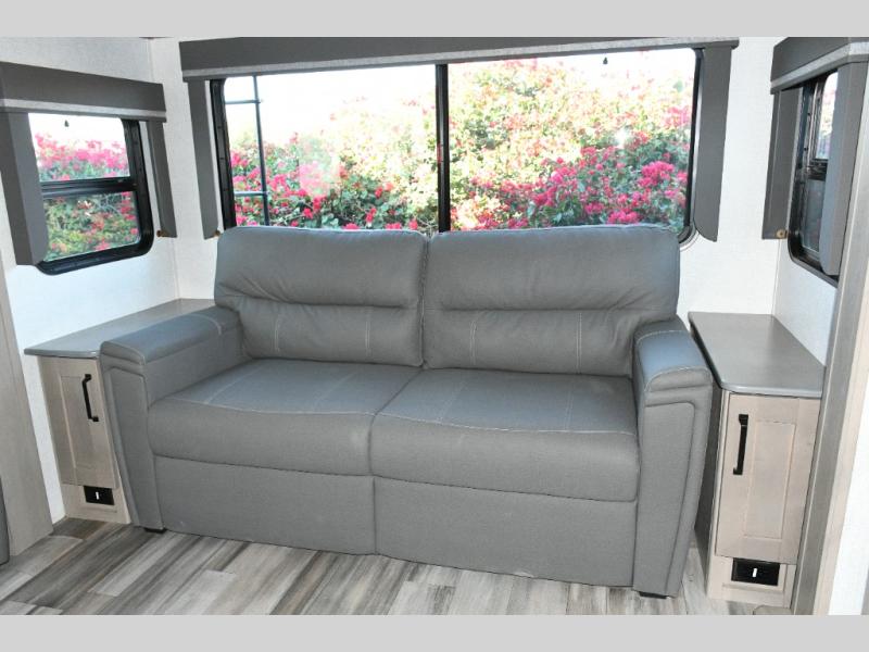 • Rear Living Area with tri-fold sofa and theater seating for relaxing after a day of adventure