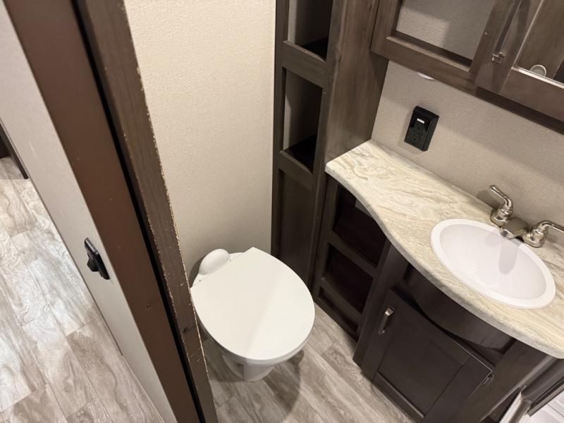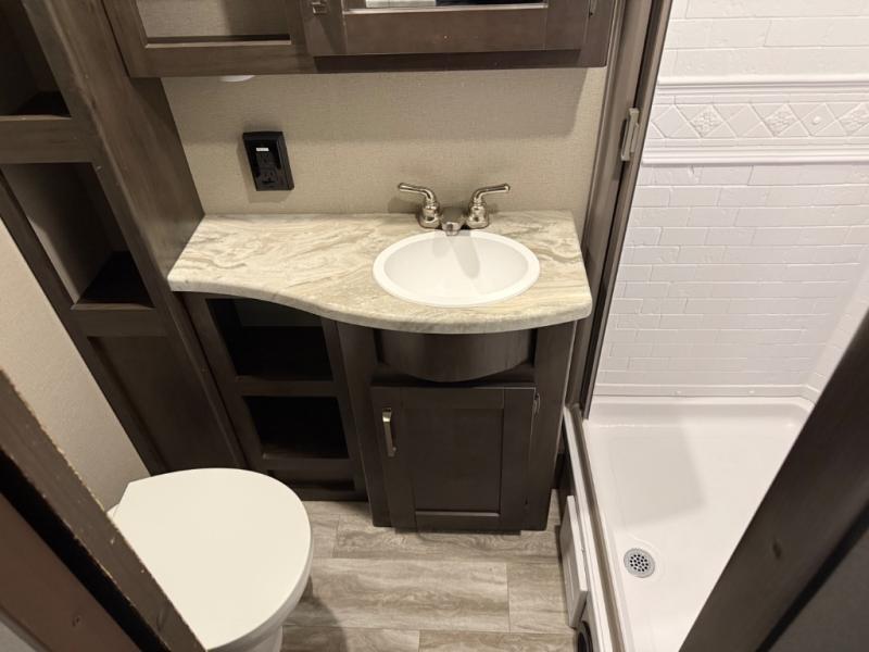 The bathroom features a spacious shower, vanity, and toilet, so you can stay fresh and comfortable wherever you travel. With practical storage throughout, including exterior compartments, you’ll have room for gear, toys, and all the essentials for every getaway.