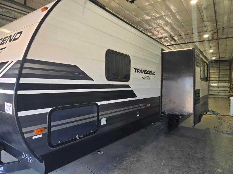 You can advance beyond the typical and mundane travels by using this Transcend Xplor travel trailer to create new and exciting adventures! You won't ever have to worry about where everyone is going to sleep because the double-size bunks, jackknife sofa, U-shaped dinette, and queen-size bed provide loads of sleeping space. There is also great accessibility with the two entry doors, and the walk-through bath also has two points of entry with doors on either side. The entertainment center is directly across from the U-shaped dinette, and you can even change out the dinette for the optional theater seats for added comfort while you watch a movie. This model also includes a 42" x 22" rear storage that will allow you to bring along even more comforts from home!