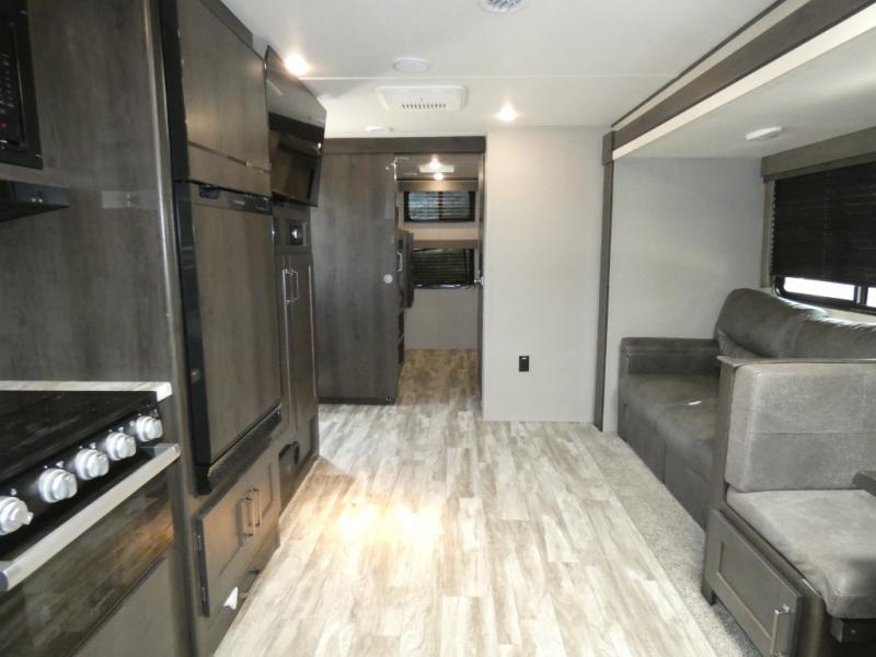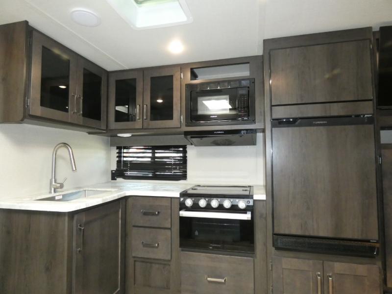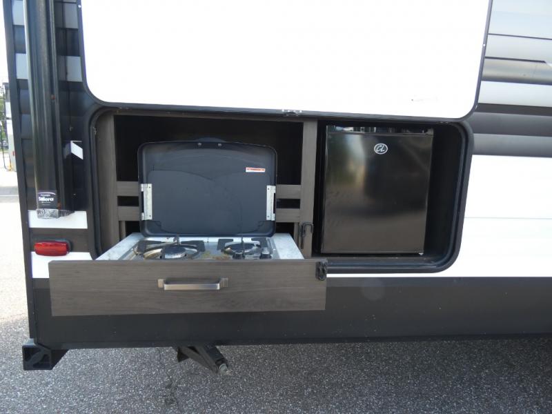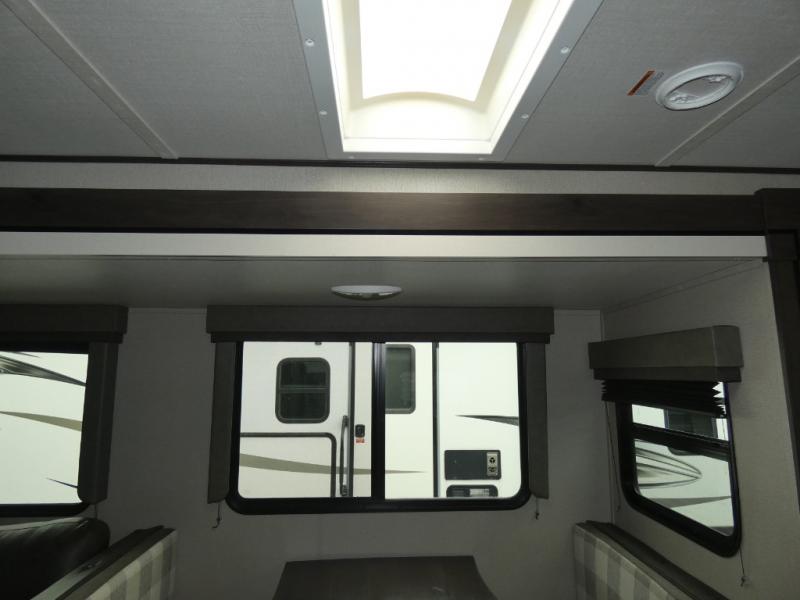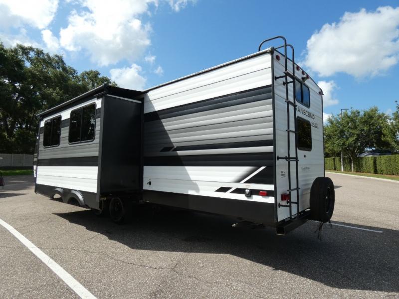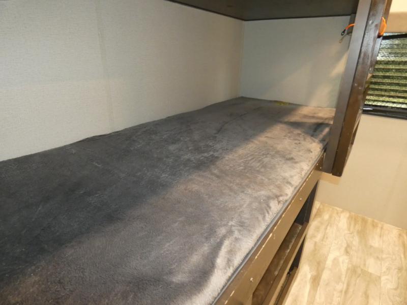 Whether you enjoy cooking indoors or outdoors, you will have the choice each meal with this Transcend Xplor travel trailer. The exterior offers an outside kitchen including a 1.6-cu. ft. outdoor refrigerator and LP quick connect, and the indoor kitchen includes full amenities along an L-shaped counter making it easy to make warm meals to feed the crew. Some may enjoy dining at the booth dinette within the large slide out while others may decide to relax under the 21' power awning outside. The private front bedroom offers the second entry door, plenty of storage, a queen bed, and easy access into the walk-through bathroom. The bunkhouse gives the kiddos their privacy, four bunks to choose from, drawers for storage, and a half bath for convenience.
