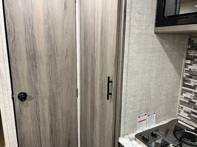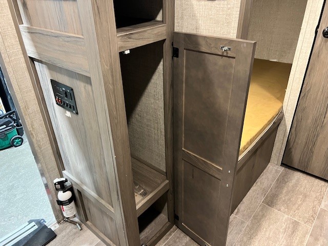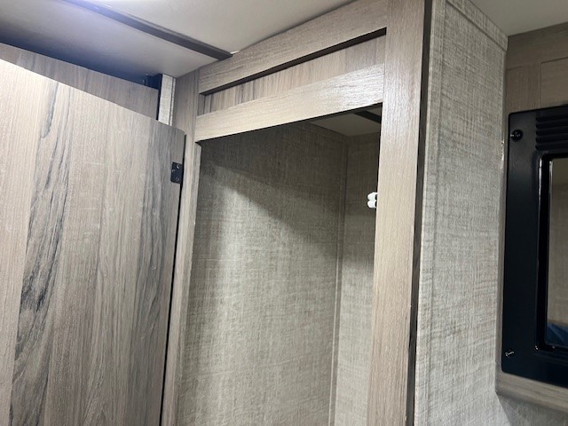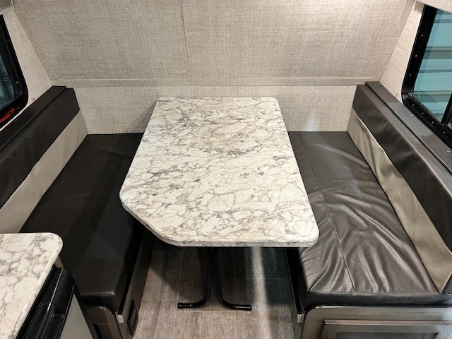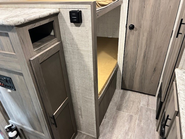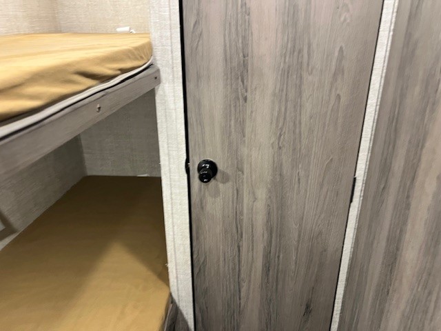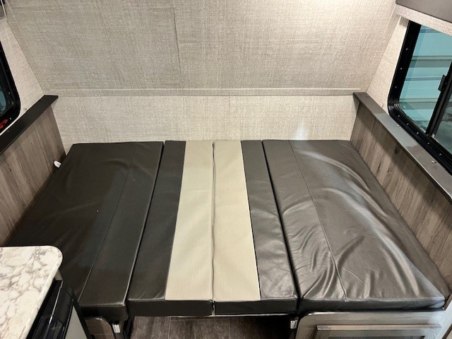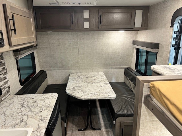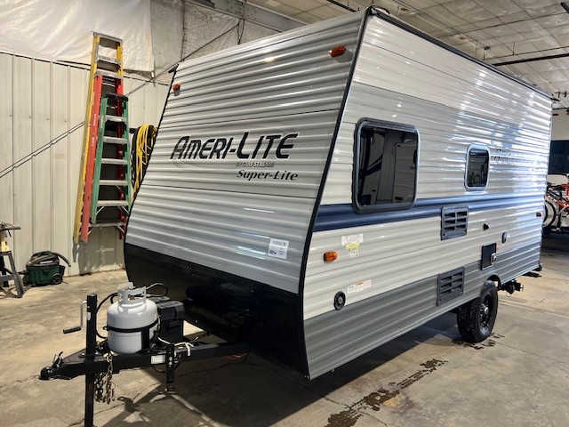 In this Ameri-Lite Super Lite travel trailer, you will not only find a trailer that is super easy to tow, but also filled to the brim with storage space. This model can sleep four people comfortably each night between the bunk beds and the convertible booth dinette, and the two-burner cooktop makes dinner preparations simple and affordable. You won't have to plan out your travel routes based upon accessible rest stops because the private bathroom included in this trailer gives you the ability to shower anywhere this trailer is parked.