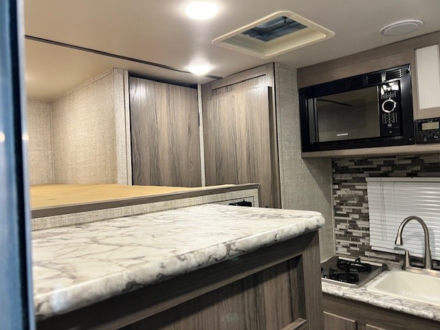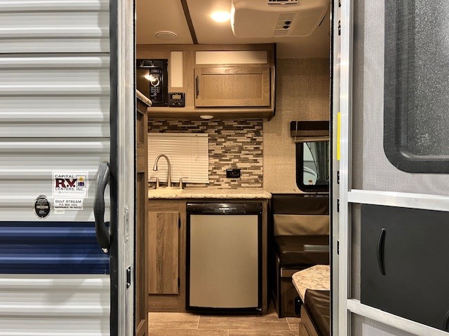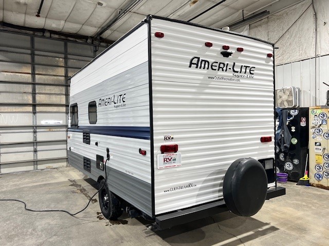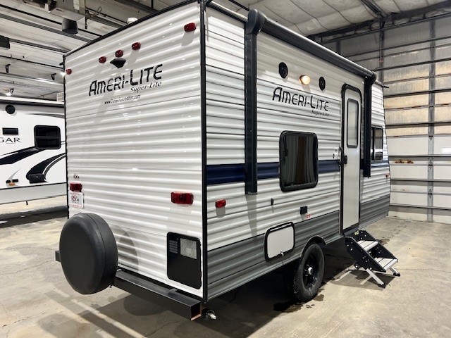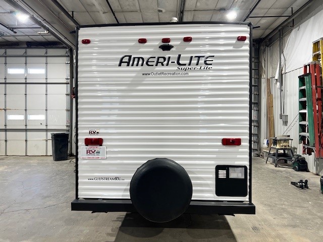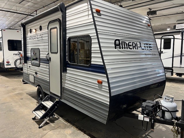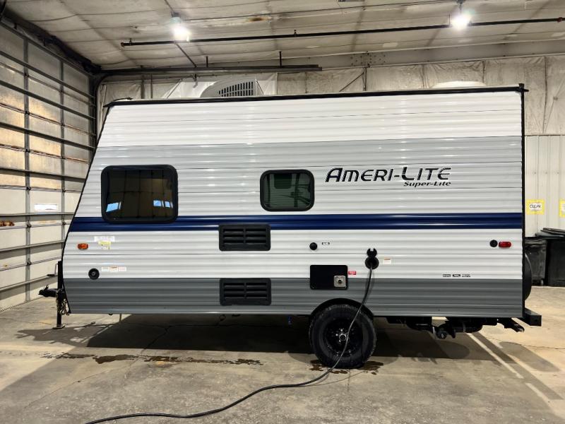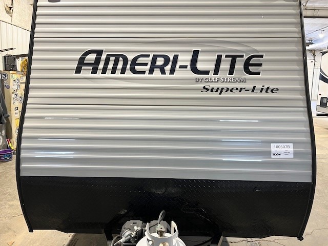 If you're looking for an affordable, lightweight travel trailer, you've found it in the Ameri-Lite Super Lite by Gulf Stream. These models may be lighter in weight, but they don't skimp out on comfortable features. Each unit includes high-performance vinyl flooring throughout, a white kitchen sink, craft-made cabinetry with designer pulls, plus fabric-wrapped box valances to make you feel right at home. The 16,000 BTU furnace and 13,500 BTU A/C will keep you comfortable in any season, and each model includes multiple USB ports for your tablet and phone and a 6' 8" ceiling height for added space. These models also include a 6-gallon gas DSI water heater, a central control panel to control your unit's functions, plus plenty of safety features you are sure to appreciate for your family. You can't go wrong with an Ameri-Lite Super Lite travel trailer. Choose your favorite floorplan today!