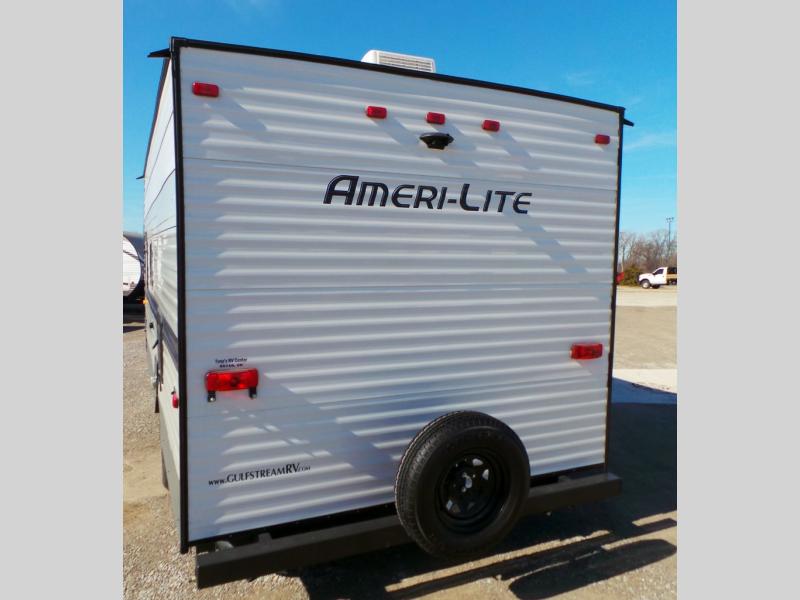 If you're looking for an affordable, lightweight travel trailer, you've found it in the Ameri-Lite Super Lite by Gulf Stream. These models may be lighter in weight, but they don't skimp out on comfortable features. Each unit includes high-performance vinyl flooring throughout, a white kitchen sink, craft-made cabinetry with designer pulls, plus fabric-wrapped box valances to make you feel right at home. The 16,000 BTU furnace and 13,500 BTU A/C will keep you comfortable in any season, and each model includes multiple USB ports for your tablet and phone and a 6' 8" ceiling height for added space. These models also include a 6-gallon gas DSI water heater, a central control panel to control your unit's functions, plus plenty of safety features you are sure to appreciate for your family. You can't go wrong with an Ameri-Lite Super Lite travel trailer. Choose your favorite floorplan today!