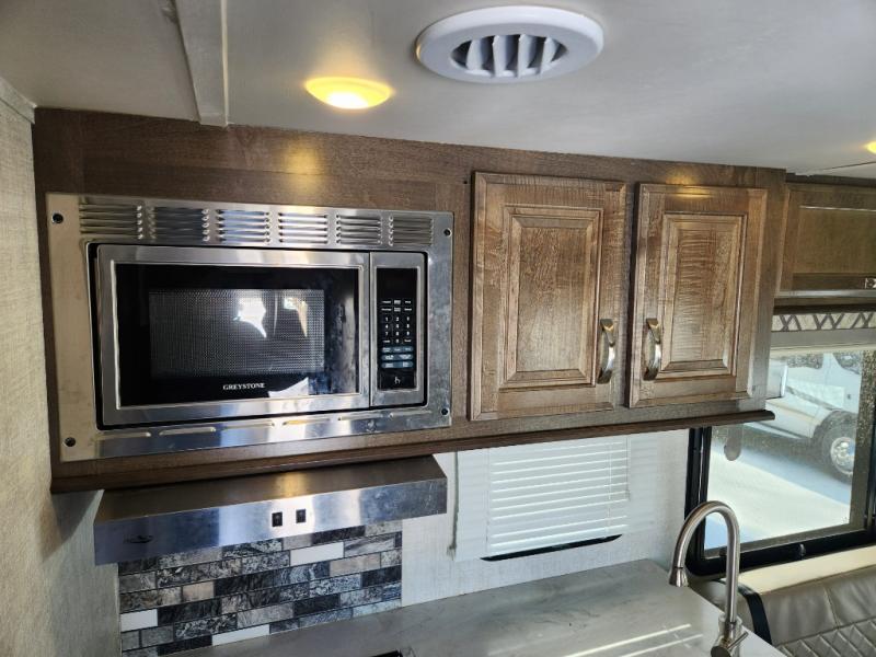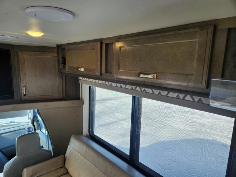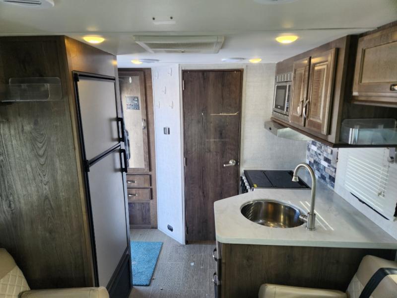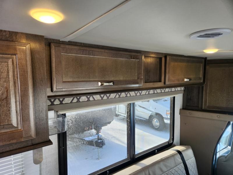 This BT Cruiser Class B+ touring coach has got you covered when it comes to your adventures! You are going to love traveling in comfort and style with everything you need right at your fingertips just waiting for you to enjoy! There is plenty of seating during the daytime hours with two jackknife sofas just behind the driver and passenger seats, and when night falls, they can quickly be transformed into sleeping spaces. There is also ample storage with overhead cabinets above the cab area, kitchen, and above each sofa and a wardrobe in the back. This will make it easy to keep things neat and organized. There is also a TV mount over the cab area.