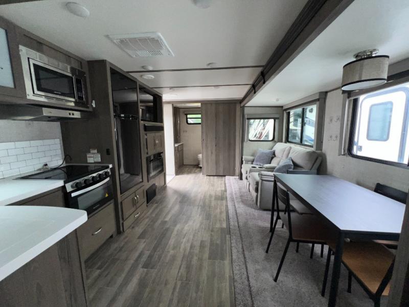 This includes a major systems inspection performed by our service techs after purchase. We will verify the roof air, refrigerator/freezer, slide-outs, generator (if equipped), water, and LP systems, all function as intended. In addition, the buyer always has the option and is encouraged to have a 3rd party inspection done at their expense. For a complete list of everything we go over in our service checkout please contact one of our salespeople.