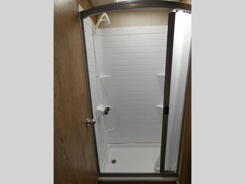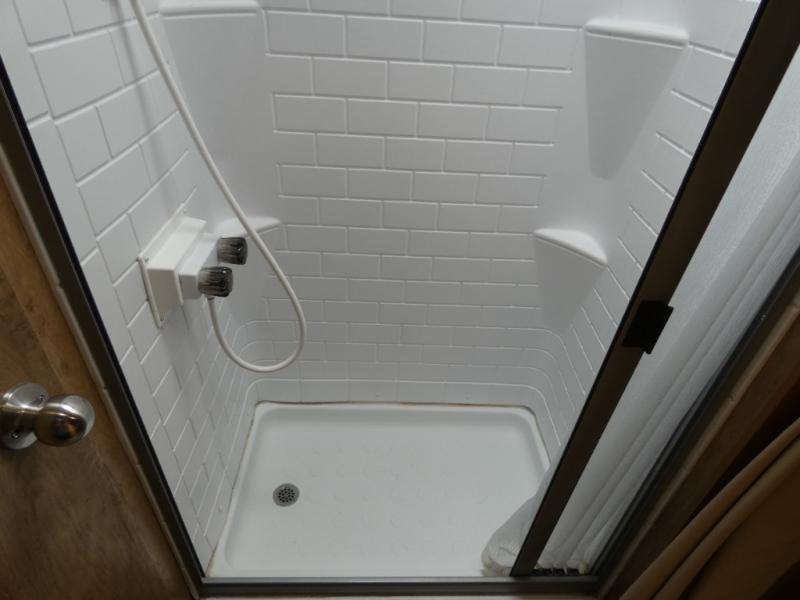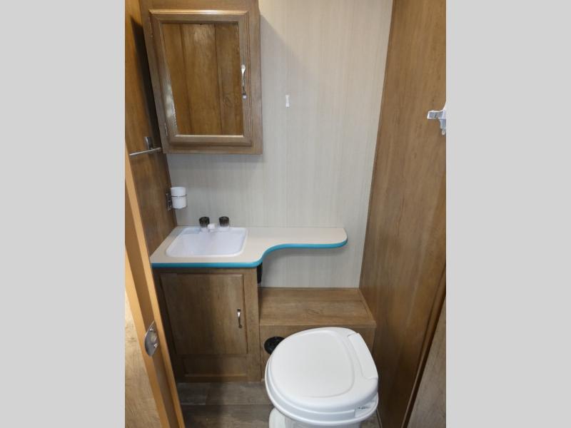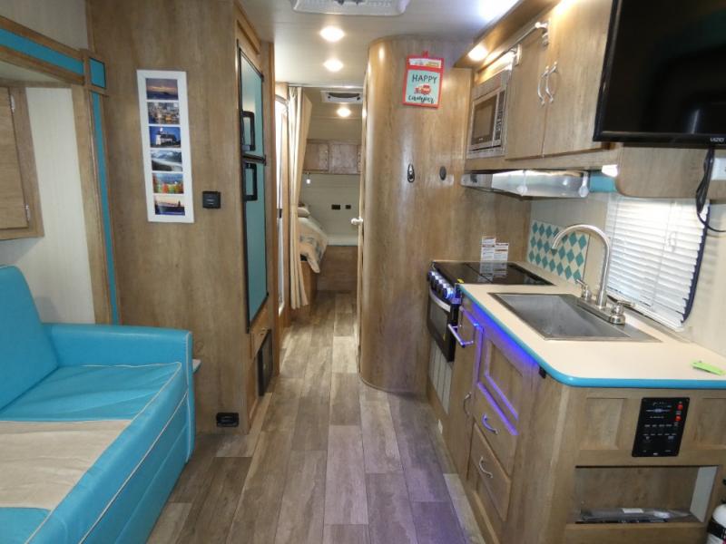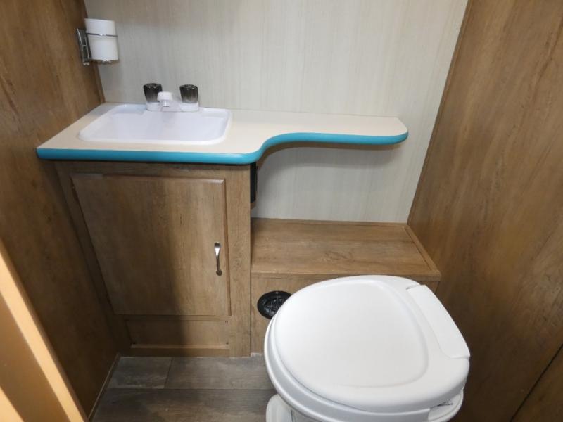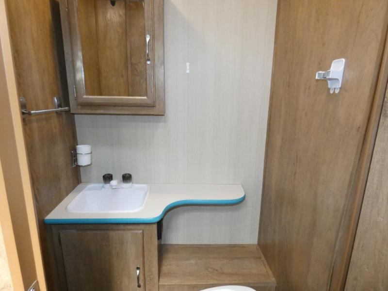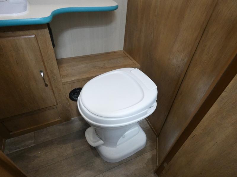 Camping with friends just got a whole lot sweeter in this retro travel trailer! Once you arrive at the lake, prepare a quick lunch on the two burner cooktop, or use the microwave oven. When you return, two people can freshen up at once since there is a private toilet and sink with the shower just across the hall.