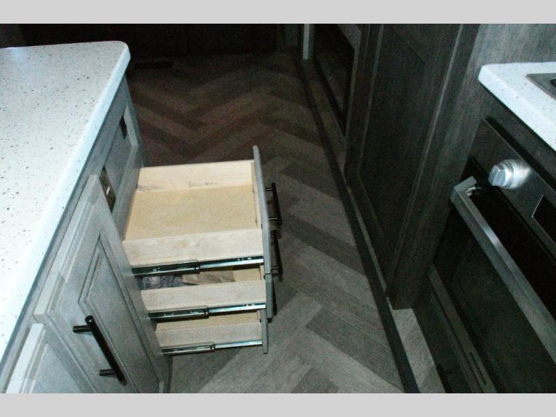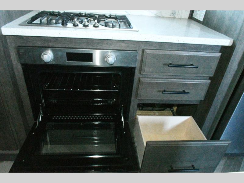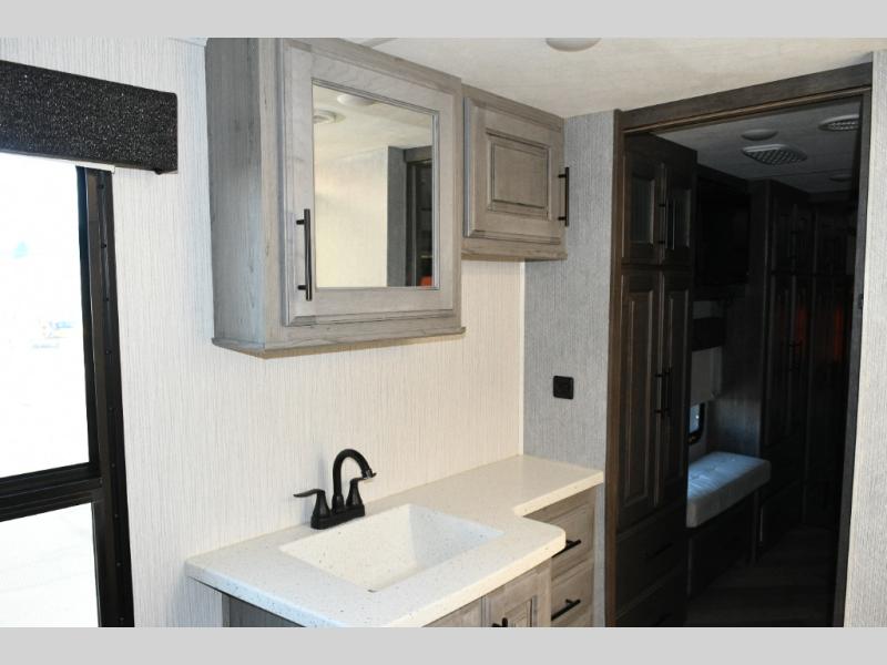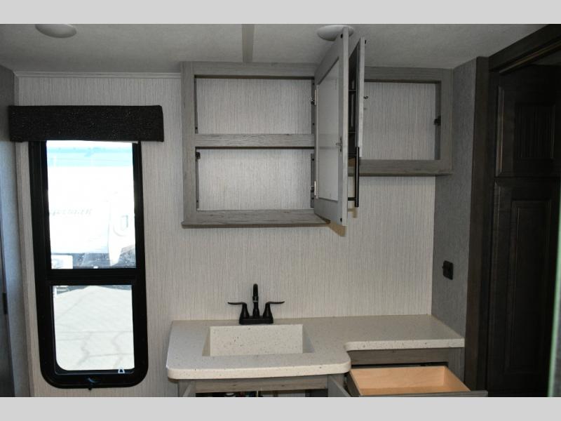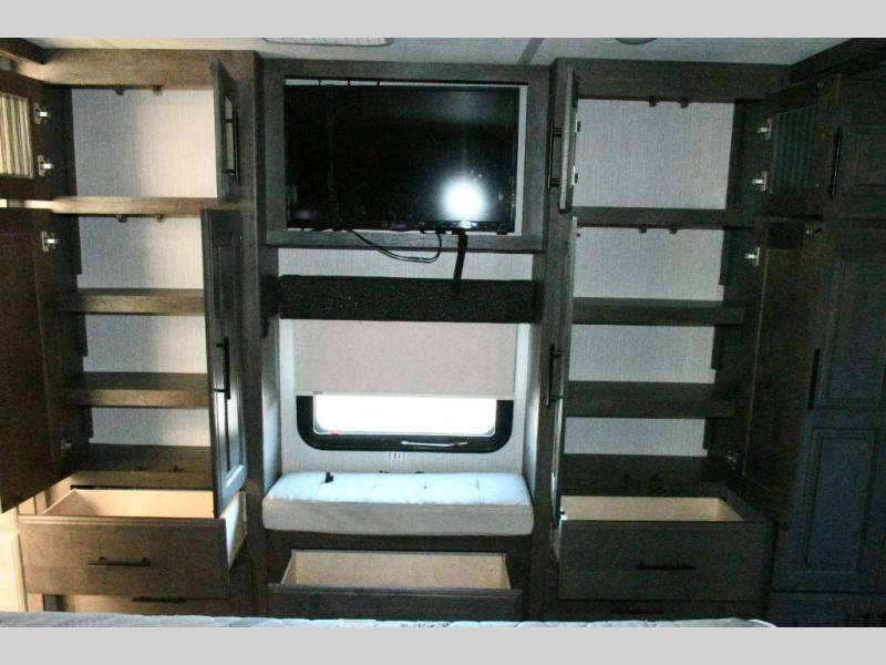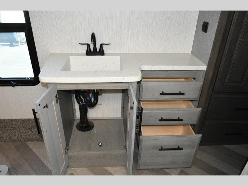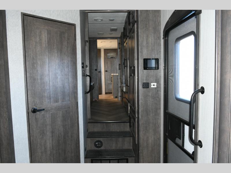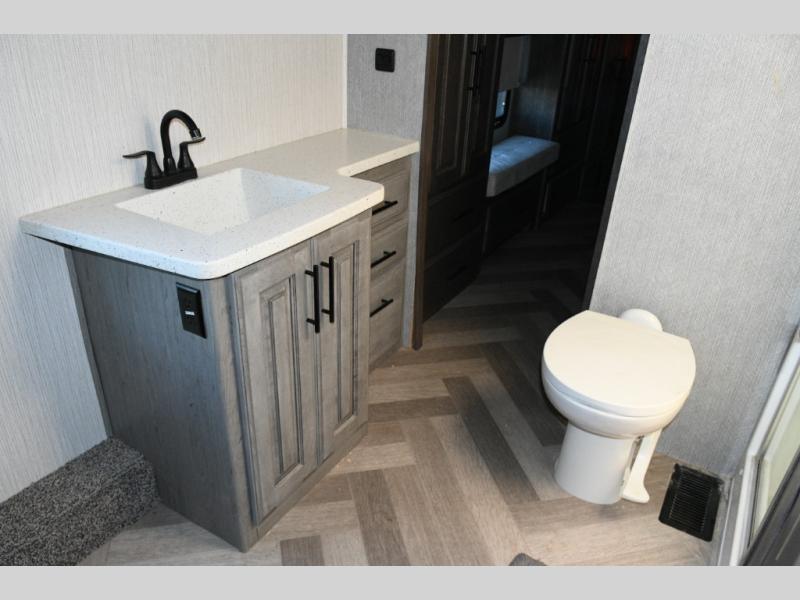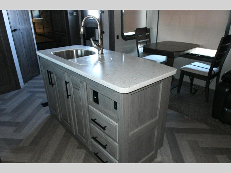 The 3702 FB’s layout is designed for both comfort and functionality. The front king bed and dual bathrooms offer privacy and convenience, while the rear living area and kitchen island create a social space for meals, entertainment, and relaxation. Coupled with the rugged construction and advanced suspension, this fifth wheel ensures a safe and smooth ride to every destination.