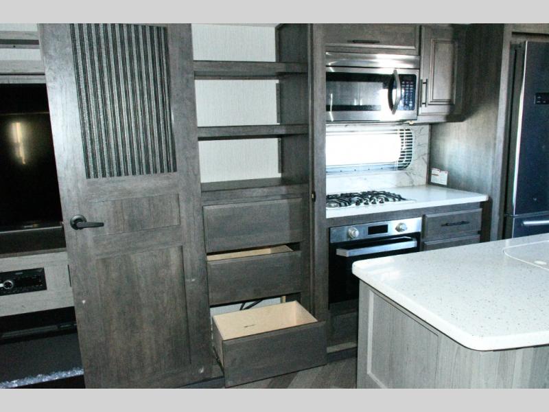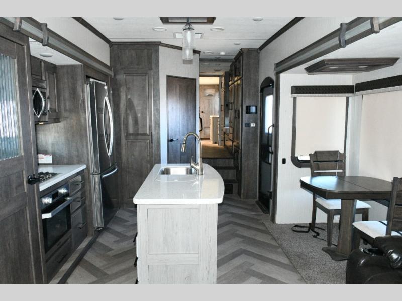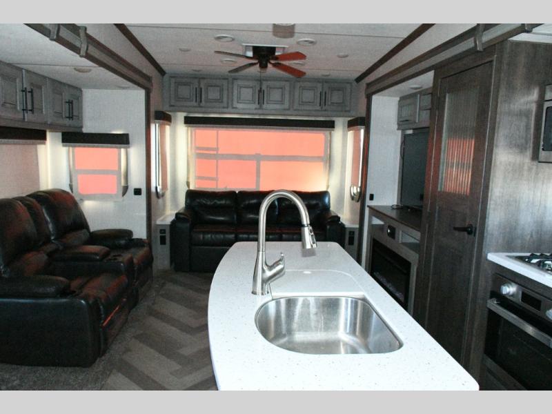 Featuring a king-size bed, rear living area, and a full kitchen with an island, the 3702 FB is perfect for entertaining, relaxing, and making memories with family and friends.