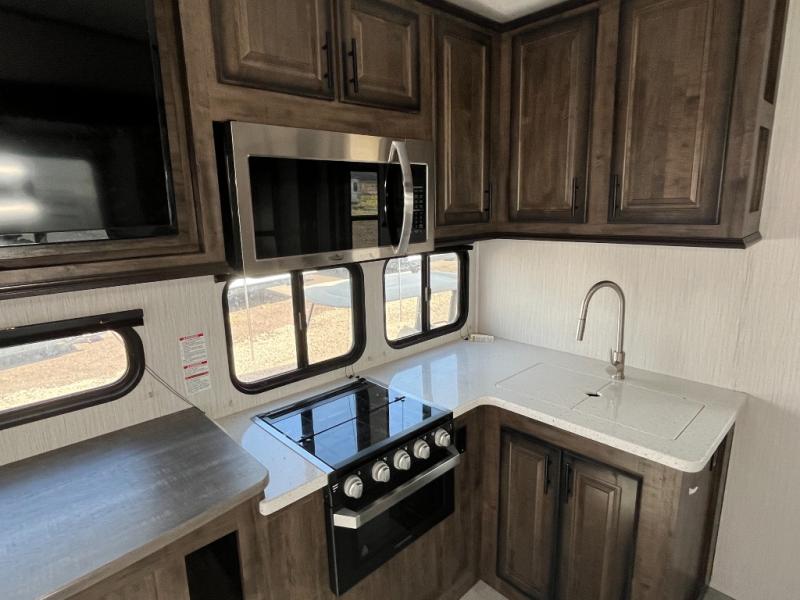 You will have the ultimate space to escape for the weekends with any one of these Heartland ElkRidge fifth wheels! They offer true luxury with interior refinements like a Connex entertainment center, woven flooring, a master chef kitchen with a single basin farm style sink that has a residential faucet with a pull-out sprayer, and an ElkRidge master suite with under bed storage. The Let's Go Hydraulic six point one touch auto leveling system and main slide system make it easy for you to set up your unit. And they are easy to tow too with a Roto Flex pin box, dual 7,000 lb. Dexter axles with a Nev-R-Adjust brake system, and F-rated tires. The universal docking center has all system hook-ups in one convenient and concealed compartment to make life at the campsite easier too!