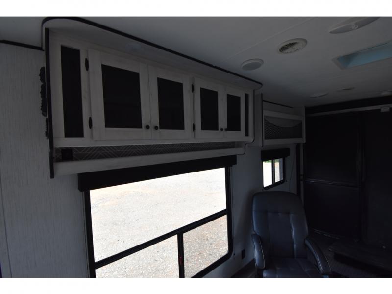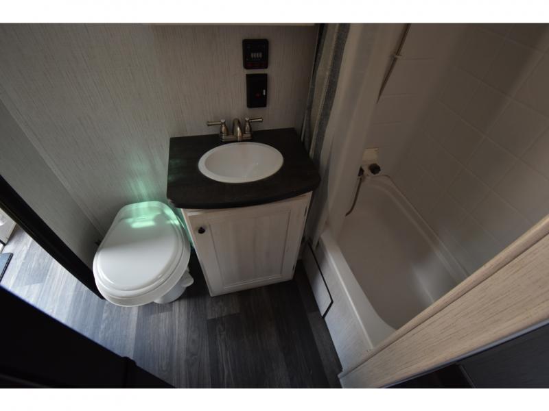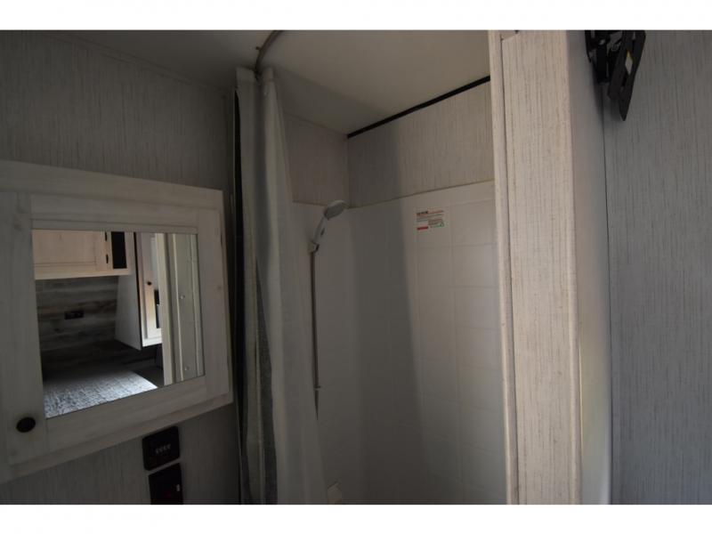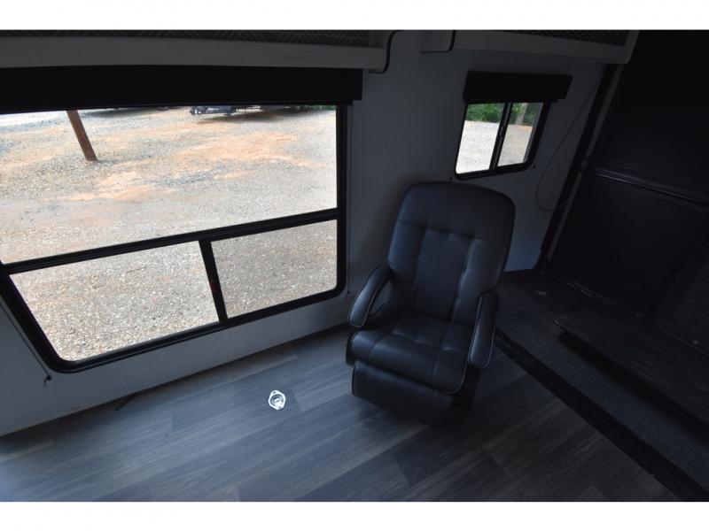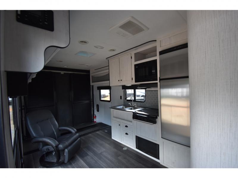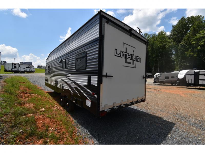 The Heartland Lithium toy hauler is a great way to bring a little extra power to your outdoor adventures! The Lithium has Dexter axles, an electric rack and pinion slide system, a front diamond-plate stone guard, garage tie-downs, power stability jacks, and an enclosed underbelly. Use the XL entry grab handle and flip-down entry step to get inside easily, and enjoy some added shade outside when you sit underneath the power awning with LED lights. The other feature that will certainly enhance your trips with the Lithium is the 30-gallon fuel station that will allow you to fill up your toys so that you can ride them all weekend long, and the 8' interior height is able to accommodate even the tallest travelers.