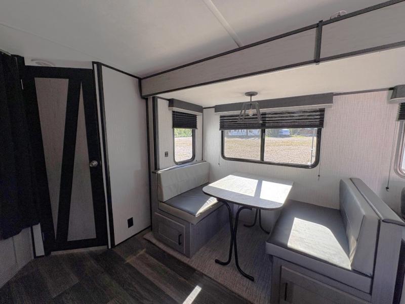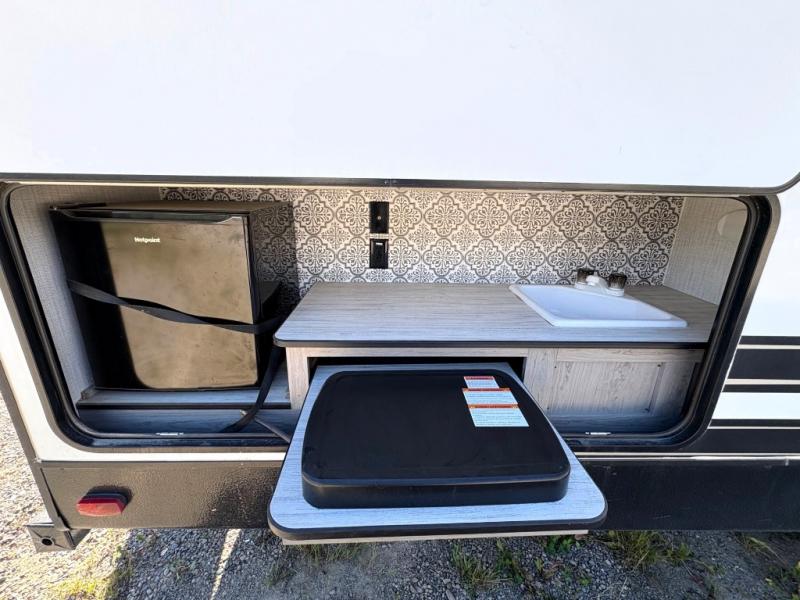 You will enjoy every camping vacation in this Mallard travel trailer! This trailer has some pretty handy features such as the exterior slide cooktop and a set of double-size bunk beds next to the corner full bathroom which will come in handy for any late-night trips. The booth dinette is the perfect place for you to enjoy your meals, play a game, or even use as an extra sleeping space for guests, and right next to the dinette is the sofa. The single slide gives everyone more floor space to move about when inside, and the power awning allows everyone to relax outdoors with some protection from the elements.
