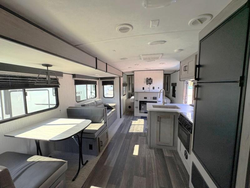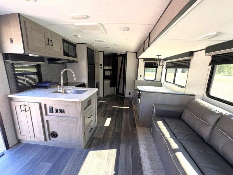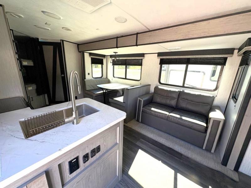 What I liked most: Overall I like the design and the visual appeal. The sleeping capacity for a family is a must with the bunk beds, the queen sleeper in the front and the ability to make down the love seat and the dining area. (Family of 7 here) As a camper its pretty good. If one was forced to live in it, it would get tight fast though.
