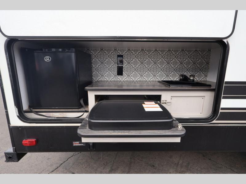 You will enjoy every camping vacation in this Mallard travel trailer! This trailer has some pretty handy features such as the exterior slide cooktop and a set of double-size bunk beds next to the corner full bathroom which will come in handy for any late-night trips. The booth dinette is the perfect place for you to enjoy your meals, play a game, or even use as an extra sleeping space for guests, and right next to the dinette is the sofa. The single slide gives everyone more floor space to move about when inside, and the power awning allows everyone to relax outdoors with some protection from the elements.