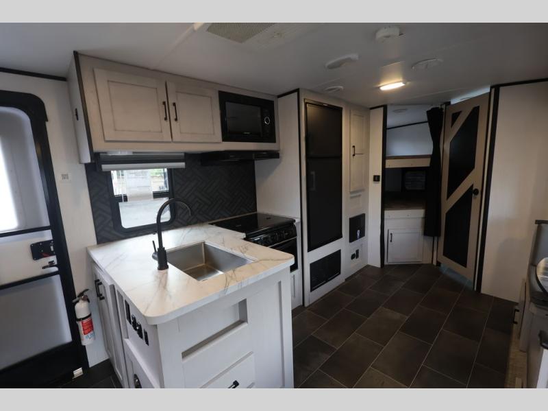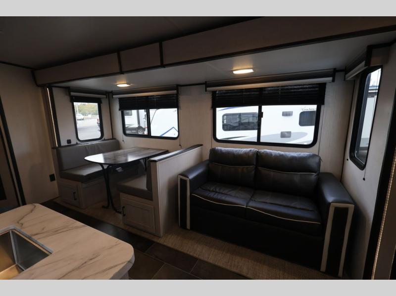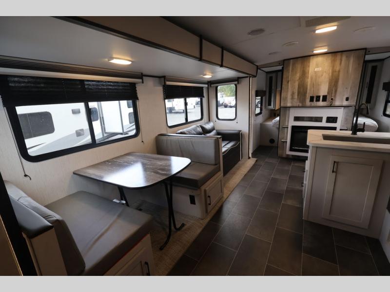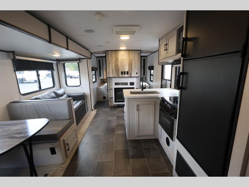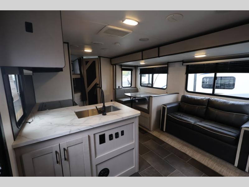 What I liked most: Overall I like the design and the visual appeal. The sleeping capacity for a family is a must with the bunk beds, the queen sleeper in the front and the ability to make down the love seat and the dining area. (Family of 7 here) As a camper its pretty good. If one was forced to live in it, it would get tight fast though.