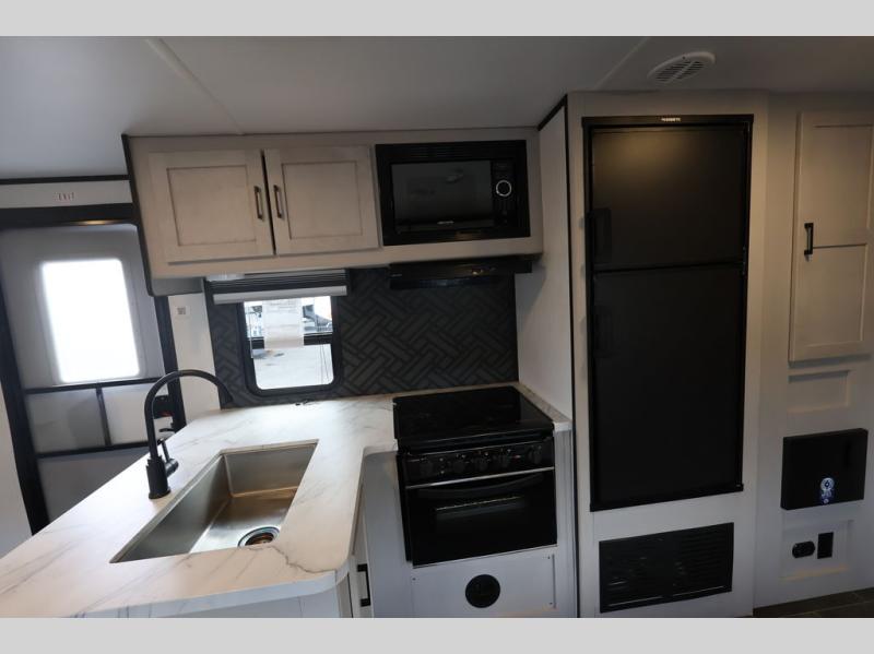 The Heartland Mallard travel trailer is quite impressive with its innovative features! The flip-down exterior steps and glow-in-the-dark graphics are some of the top exterior features, and the all-new Master Chef kitchen with Infinity edge countertops and stainless steel undermount sink is one of the top interior features that will make camping life easier. The forced-air heated and enclosed underbelly is a great feature that protects your trailer from the outside weather, and the Wide Traxx axle system, leaf spring suspension, E-Z lube hubs, and aluminum rims all work together to give you a great ride to the campsite. The Mallard has also been prepped for a solar panel, Wi-Fi, and a back-up camera, and it also has a cable-ready hook-up.