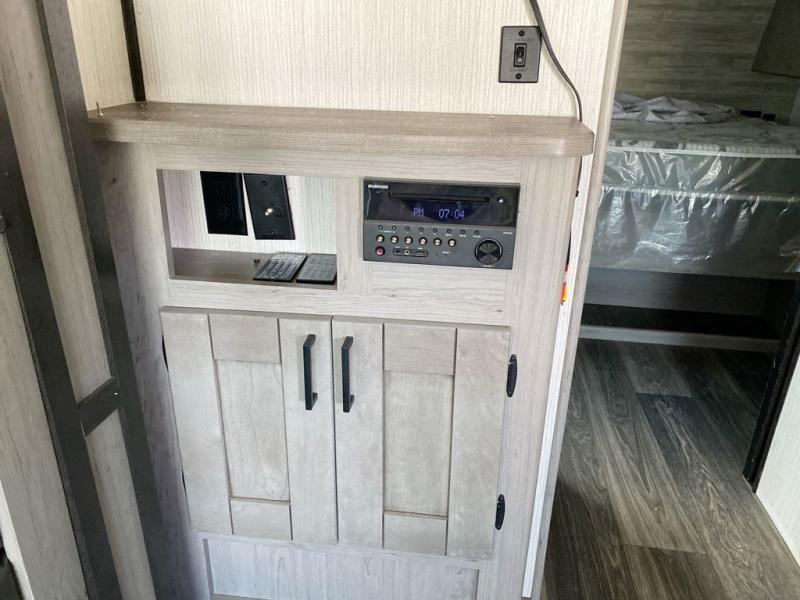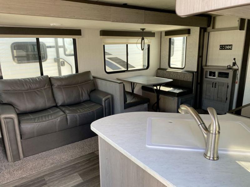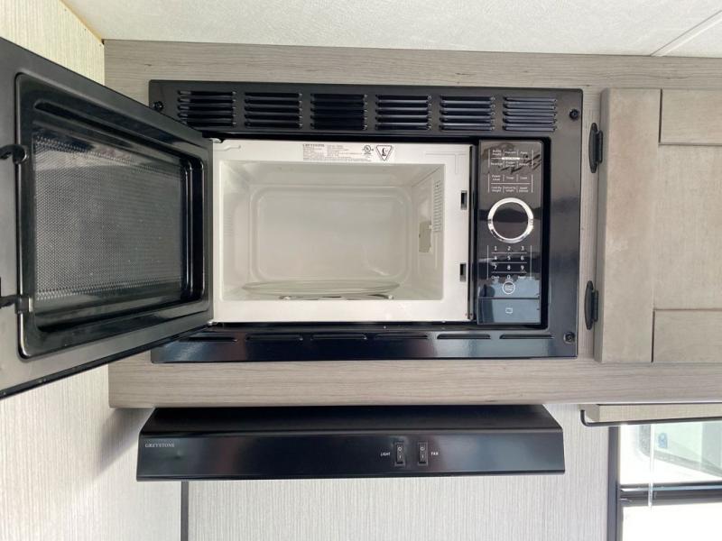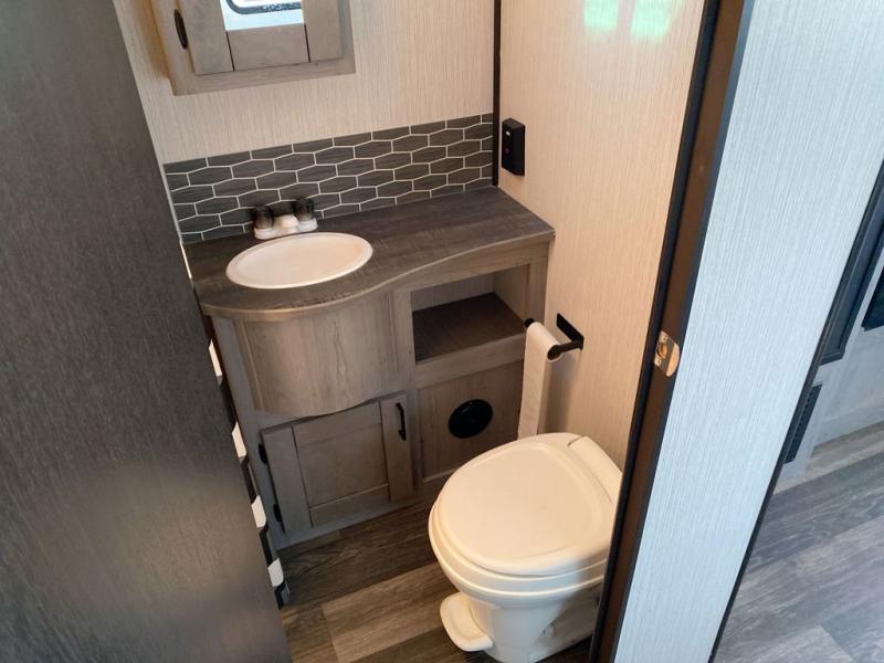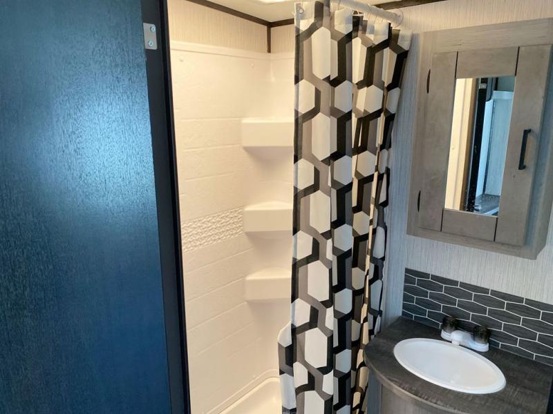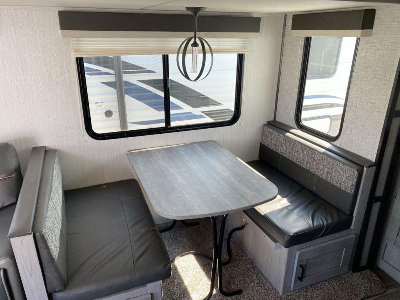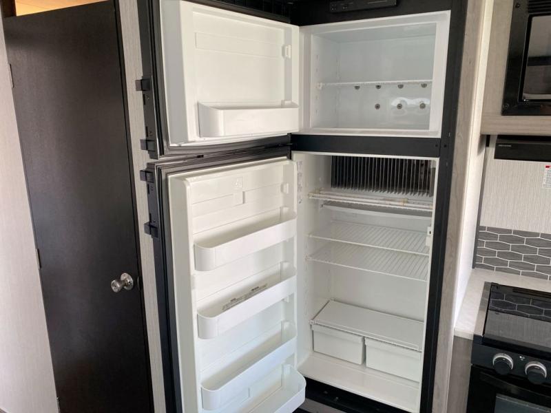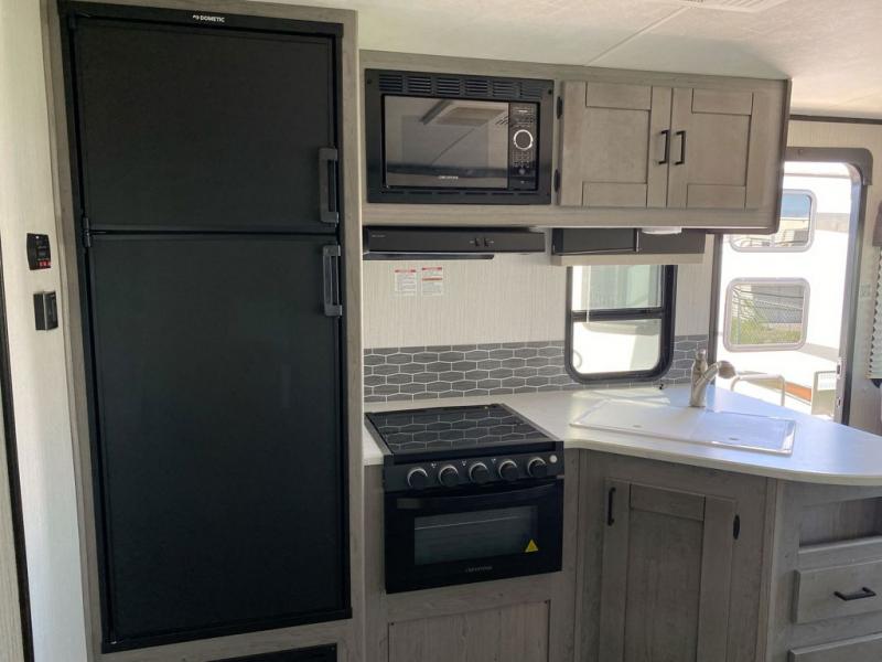 You won't ever want to leave the campground once you start camping in this dual-entry Mallard travel trailer! There is plenty of seating for everyone between the rear set of lounge chairs and the sofa next to the booth dinette, both of which can transform into extra sleeping space when needed. You will have no problem whipping up your favorite meals inside the complete kitchen, and the 8-cu. ft. double-door refrigerator is big enough to keep all of your perishables cold and fresh. What better way to wind down your night than to take a nice, hot shower in the full bathroom before heading into the front private bedroom to enjoy a good night's rest on the king bed.
