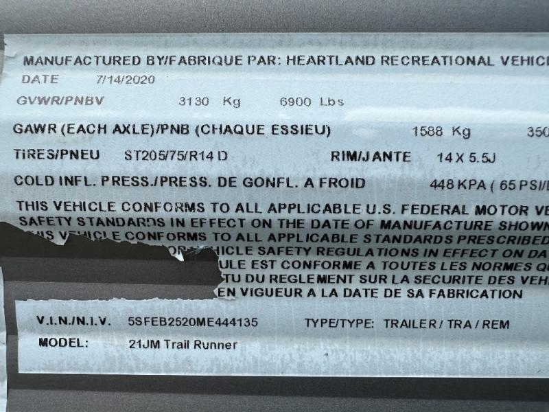 Used 2021 Heartland Trail Runner 21 JM Travel Trailer