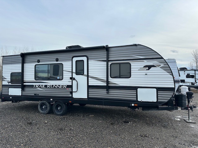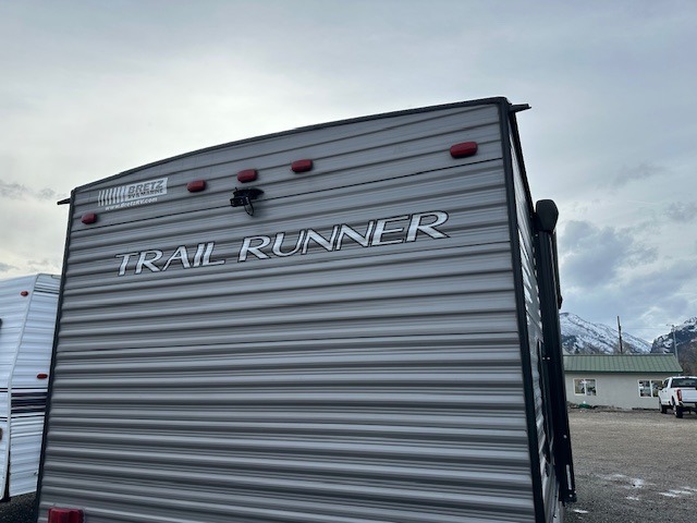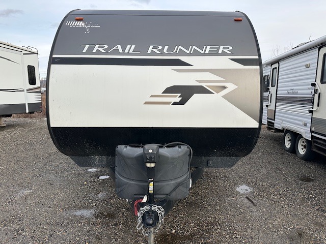 Ready, set, let's camp! Come select this Trail Runner travel trailer for your next camping trip. This trailer features sleeping space for eight people. In the back of this trailer is a set of double-size bunks, and both the booth dinette and the sofa convert into sleeping space. Also, in the front bedroom there is a queen bed. You will enjoy the convenience of the full bathroom with a skylight, and outside you will find a 14' power awning which provides plenty of shade from the sun and helps to maximize your outdoor living space!