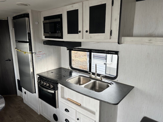 Find your true paradise by searching your favorite trails with your own Heartland Trail Runner travel trailer! The exterior is protected by a diamond plate stone guard, and you are protected while you are outside by the power awning with LED light strip. The exterior shower is going to be useful when you are hanging out by the fire or coming back from the lake, and the auto-ignition furnace will keep you toasty and warm during the cool fall months. The heated, enclosed underbelly is also beneficial during the cooler temperatures, and the Trail Runner has been prepped for a back-up camera which will make it easier to travel those trails.