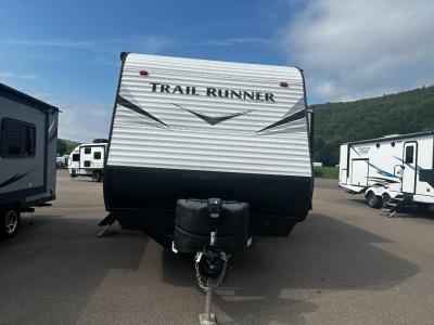 Find your true paradise by searching your favorite trails with your own Heartland Trail Runner travel trailer! The exterior is protected by a diamond plate stone guard, and you are protected while you are outside by the power awning with LED light strip. The exterior shower is going to be useful when you are hanging out by the fire or coming back from the lake, and the auto-ignition furnace will keep you toasty and warm during the cool fall months. The heated, enclosed underbelly is also beneficial during the cooler temperatures, and the Trail Runner has been prepped for a back-up camera which will make it easier to travel those trails.
