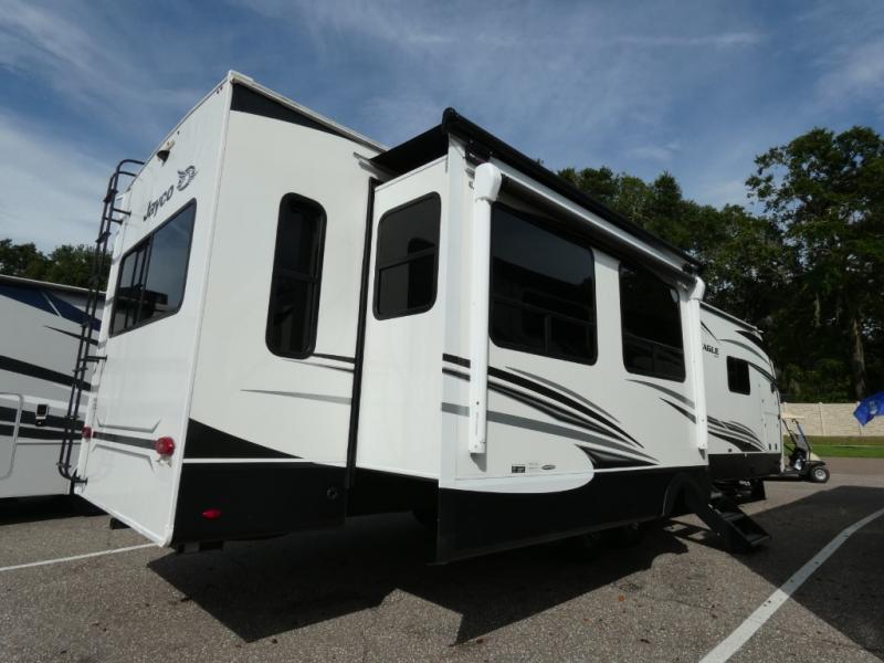 Start having generations of family fun with any one of these Jayco Eagle travel trailers and fifth wheels! Jayco has taken the extra steps to build high quality products that have the most advanced construction techniques with the StrongholdVBL™ vacuum-bond lamination that is the lightest yet strongest construction available in the RV industry. The Magnum Truss Roof System is 50% stronger than other roofs in the industry and are built to outlast everything but your memories with top-quality materials and innovative manufacturing techniques. There are three mandatory packages in addition to the long list of standard features to make each and every trip as enjoyable as it can be. A few of these features include a patent-pending Drinking Water System™, an LED fireplace with 5,000 BTU electric space heater, MORryde® StepAbove™ entrance steps with blue LED light, and an observation camera prep on the rear and sides. With Goodyear® Endurance® tires made in the U.S.A, Dexter® axles with Nev-R-Adjust® brakes and E-Z Lube® hubs, and a MORryde® CRE--3000™ rubberized suspension, you will experience a smooth ride. Don't wait any longer, come choose your favorite one today!