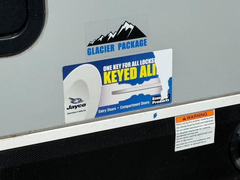 The Jayco Jay Feather travel trailers provide peace of mind with a superior construction process offering Stronghold VBL aluminum-framed vacuum-bonded lamination on every sidewall, rear wall and slide room wall on an American-made Norco frame with an integrated A-frame. Also included are American-made Goodyear tires and Dexter axles with self-adjusting electric brakes and galvanized steel wheel wells, and a 3/4 flush-mount fiberglass cap with blue LED lighting. The Sport Package is mandatory and offers a roof ladder, enhanced graphics package, roof-mount solar prep, and the Glacier package to mention a few features. The interior provides screwed and glued cabinetry, LED lighting throughout, a decorative backsplash and smoked glass decorative inserts on select overhead cabinets for style, plus much more depending on the Jay Feather you choose.