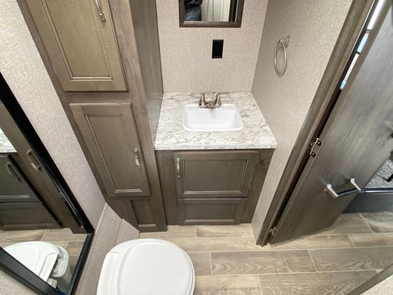 Wherever it is that you go, make this Jay Flight SLX Western Edition travel trailer a part of the fun! With a full rear bathroom, you have more privacy as you get ready each morning underneath the bathroom skylight, and you also have more space in this trailer thanks to the single slide. Step outside to take in the fresh air and enjoy the added shade that comes from the 10' power awning. After all of the fun and excitement of the day, you'll have no problem drifting off to sleep on your queen-size bed, and you can even draw the privacy curtain to close this space off from the rest of the trailer.
