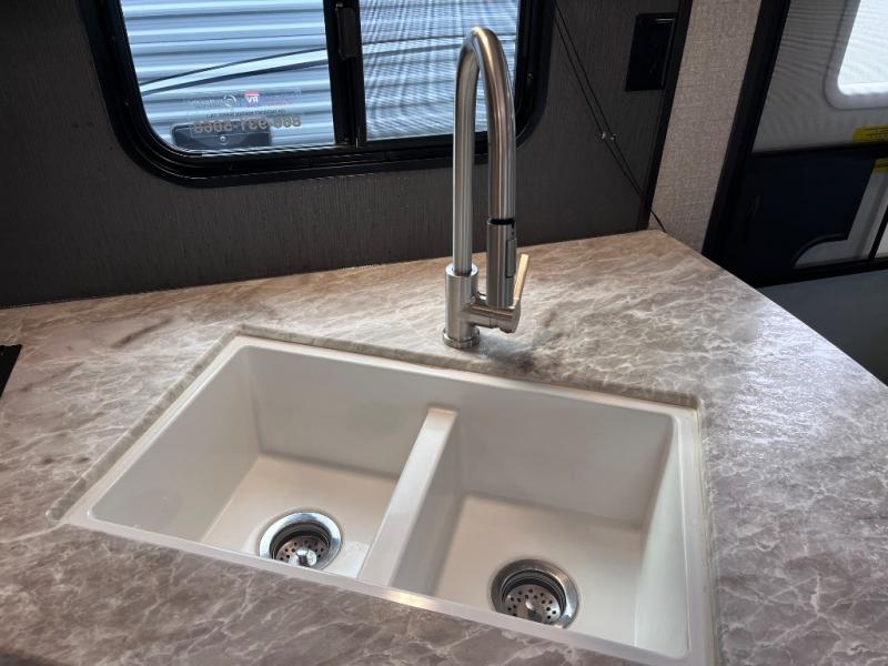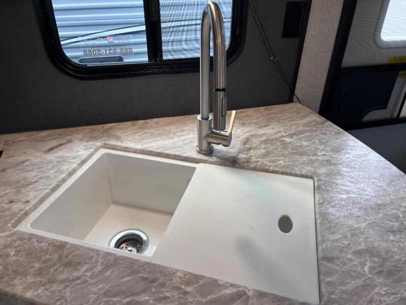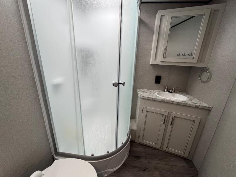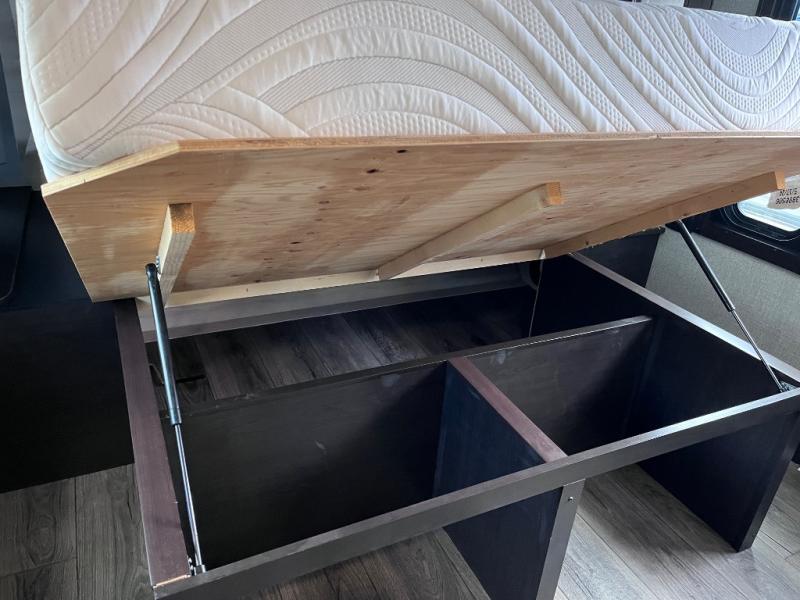 What I liked most: On entering you immediately feel at home with the living space in the back, plenty of seating in the dining area. Having a separate door in the rear for the bedroom and a separate bathroom does a good job separating the bedroom and bathroom from the living area. Feels very roomy and livable inside. Beautiful lighting and color patterns.