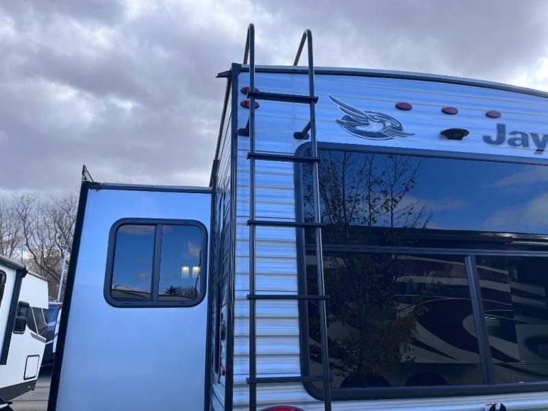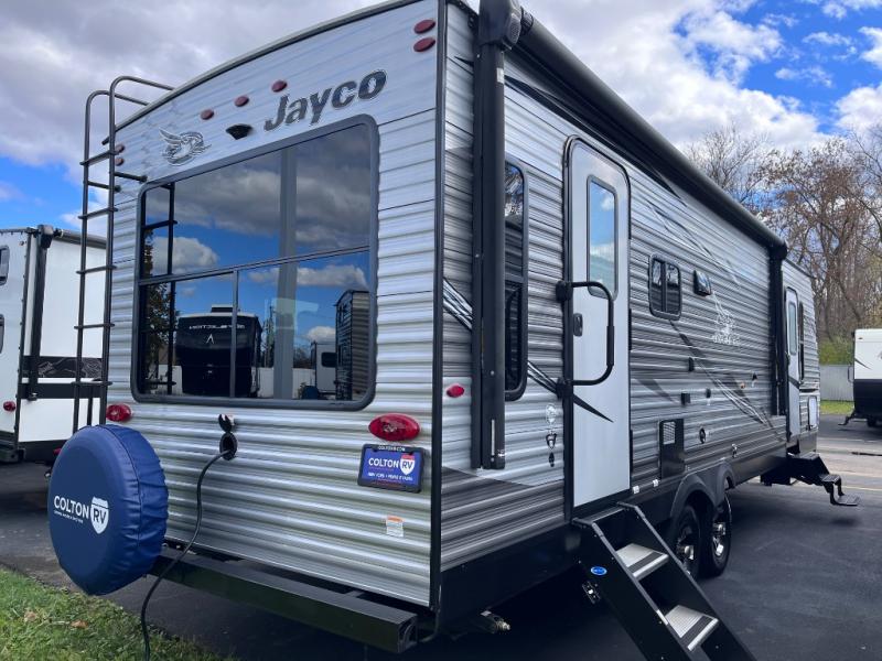 The Jayco Jay Flight travel trailer is an outstanding RV that has been recognized as America's #1 travel trailer since 2005! With all of the features and the quality that come with the Jay Flight, it's no wonder that it is the best-selling RV on the market. Jayco works hard to keep the Jay Flight on top by incorporating superior construction which can been seen in the I-Class cambered structural steel I-beams, the fully integrated A-frame, the two-sided, reflective foil insulation, and the Magnum Truss roof system. Some other aspects of the Jay Flight that will entice you are the stainless steel appliances, the Serta mattress, the USB/12V charging port, the preparations for rooftop solar power, and the patent-pending JaySMART LED lighting.