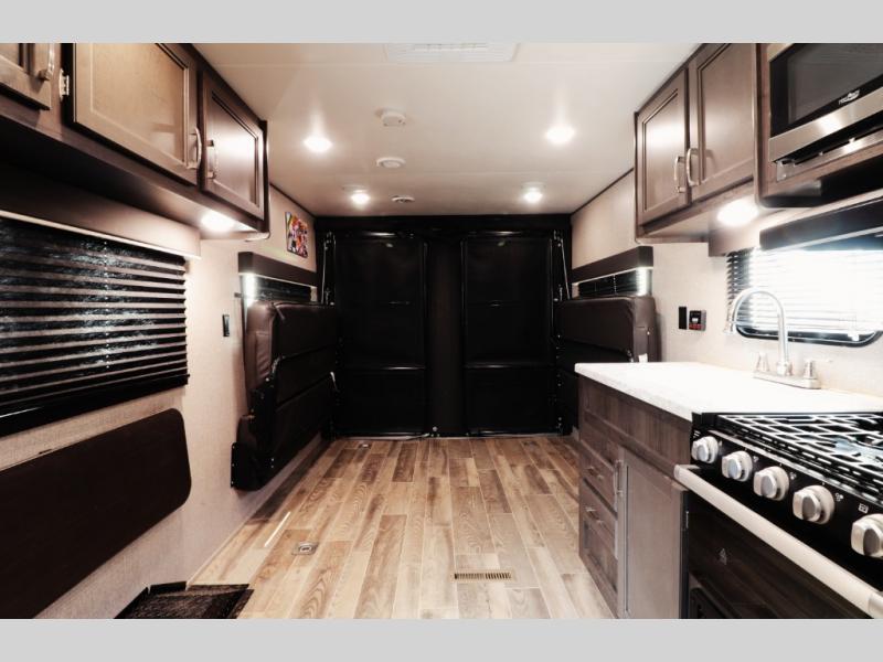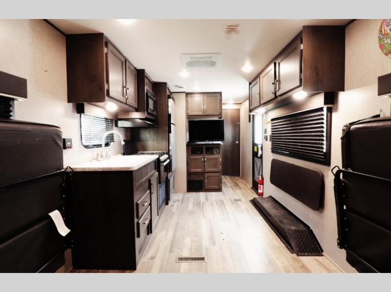 Comfortable, camper-home interior – With generous 81-inch (6'9") interior ceiling height, solid hardwood cabinet doors, vinyl (and where offered, residential-grade carpet) flooring, LED interior lighting, and high-quality finishes — this trailer delivers a cozy living space whether you’re on a short weekend getaway or a longer road adventure.