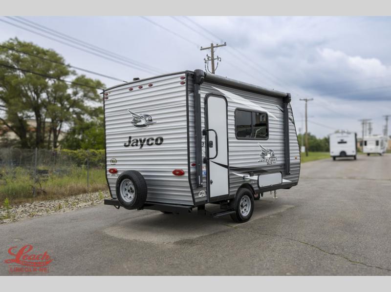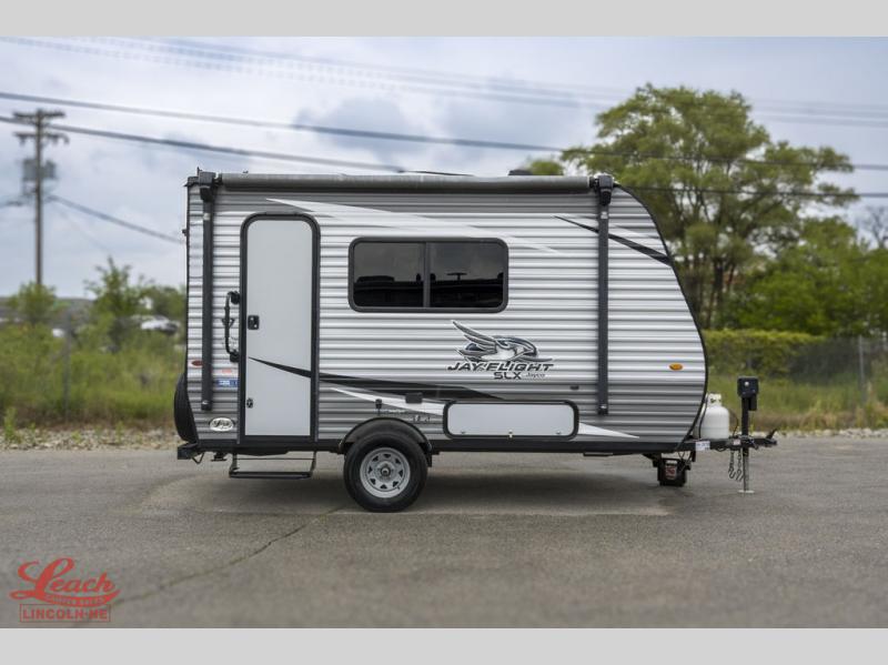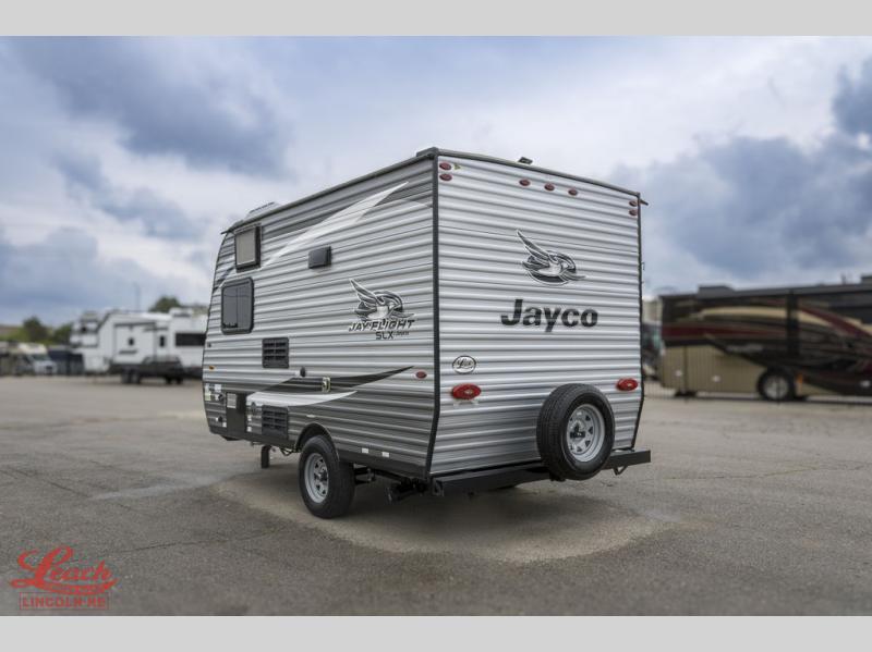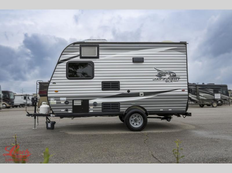You can't go wrong with a Jay Flight SLX 7 travel trailer by Jayco. These lightweight 7' wide models feature a fully-integrated A-frame, stabilizer jacks with two pads, plus a Magnum Truss roof system with seamless DiFlexx II material for a strong, sturdy unit made to last. Each model includes brushed nickel faucets, pleated window shades, a bath skylight, plus a premium multimedia sound system with MP3/iPod input jacks and Bluetooth connectivity for your entertainment needs. These travel trailers also include Goodyear Endurance tires, made in the USA, a front diamond plate, and a power awning with LED lights that will create an outdoor living space you are sure to love!