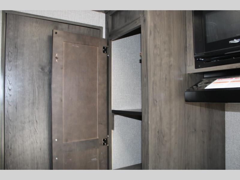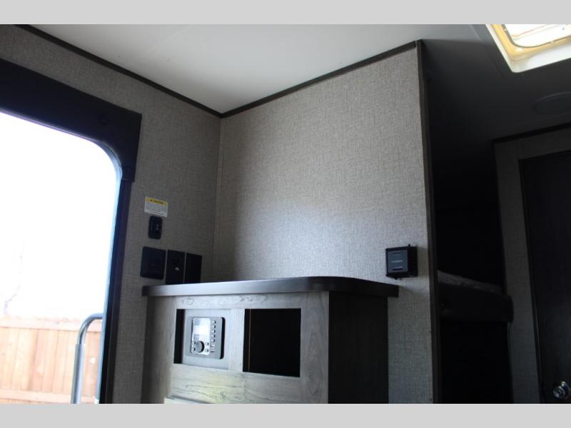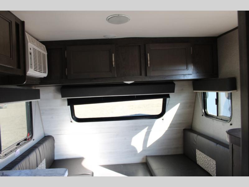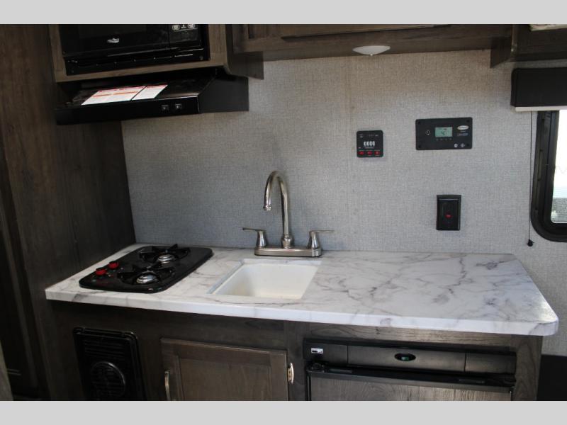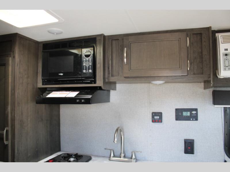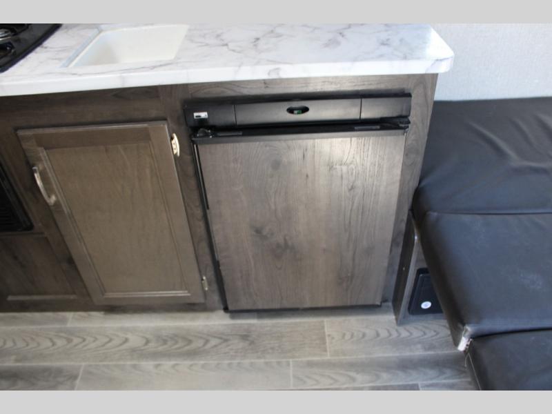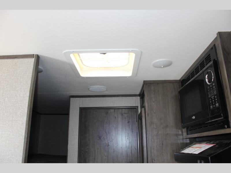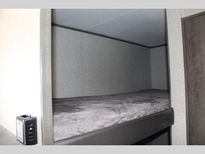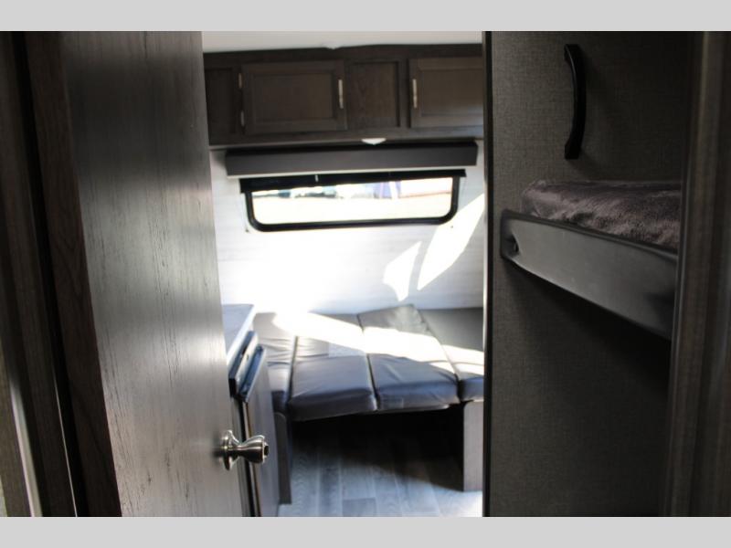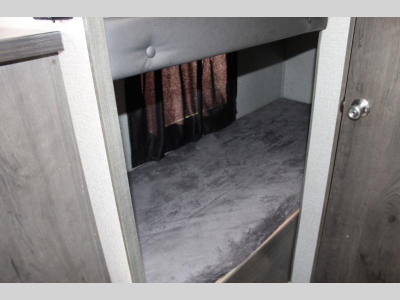 This Jay Flight SLX 7 is the perfect travel trailer to sleep three to four people between the bunk beds and the booth dinette that can convert into sleeping space. You'll find a two-burner cooktop plus a microwave oven to prepare all your meals, and the full bath amenities will come in handy after a day outdoors. Easily store your items in the wardrobe, the overhead compartments, or in the pantry. In the evening, grab your fold-up lawn chair from the outside storage compartment, and then relax under the 10' power awning with LED lights!