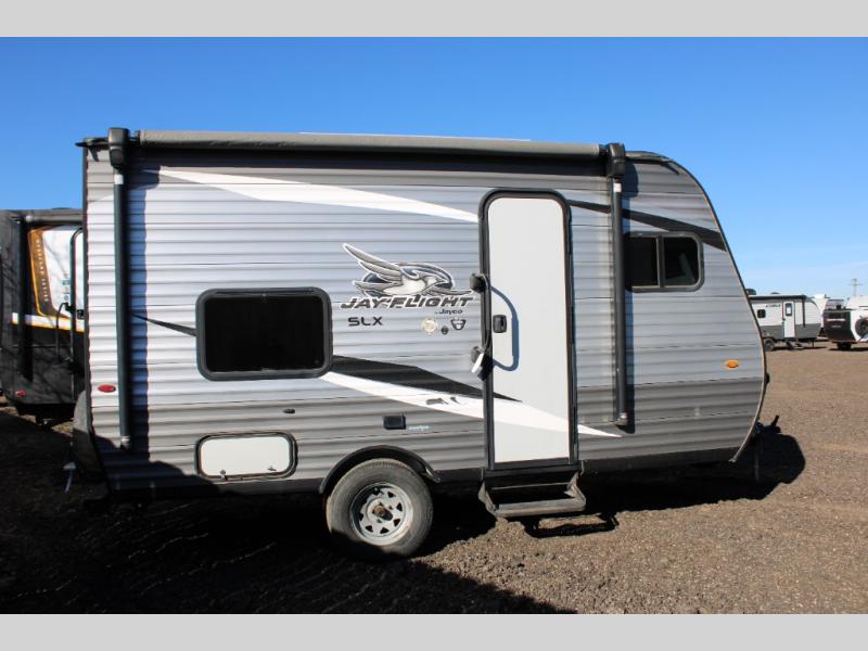 You can't go wrong with a Jay Flight SLX 7 travel trailer by Jayco. These lightweight 7'-wide models feature a fully integrated A-frame, stabilizer jacks with two sand pads, plus a Magnum Truss roof system with seamless DiFlex II material for a strong, sturdy unit made to last. Each model includes brushed nickel faucets, pleated window shades, a bath skylight, plus a premium multimedia sound system with MP3/iPod input jacks and Bluetooth connectivity for your entertainment needs. These travel trailers also include Goodyear Endurance tires that are made in the USA, a front diamond plate, and a power awning with LED lights that will create an outdoor living space you are sure to love!