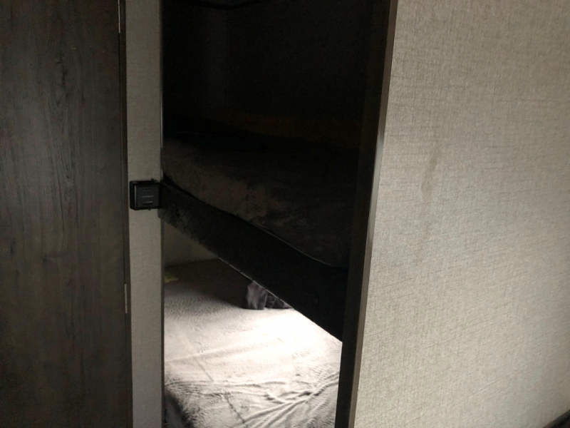 Bunk beds for the kids plus a queen bed for mom and dad make this Jay Flight SLX 7 travel trailer the perfect family unit! Whip up eggs and bacon on the two-burner cooktop, and everyone can dine at the booth dinette. If the weather is nice, you may want to take your plate to sit under the 10' power awning instead. After breakfast, grab your tackle boxes from the outside storage compartment, and then head to the river for some fun. The private bathroom will allow everyone to clean up once you return. This model also includes a pantry for storage plus overhead compartments for your special belongings.