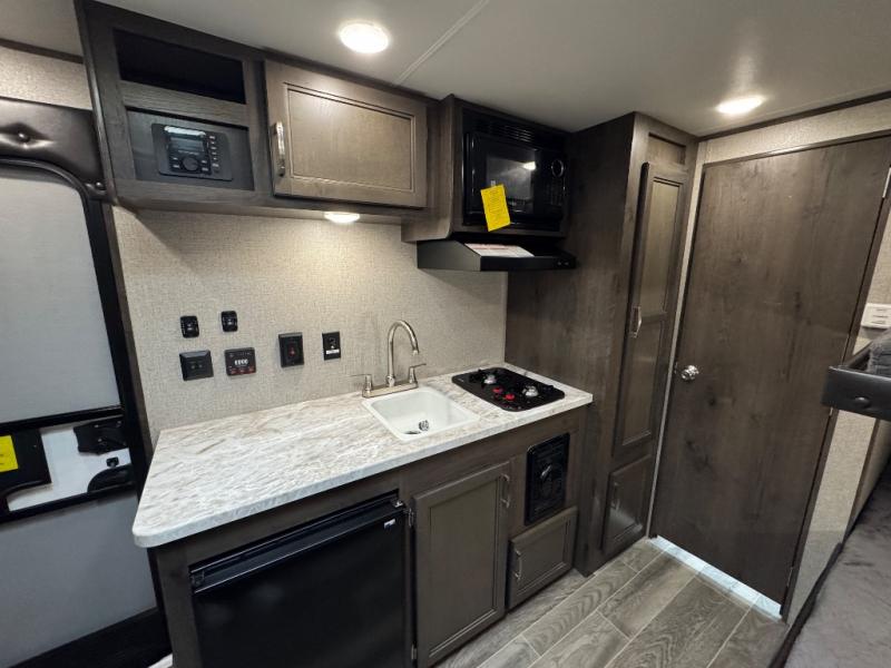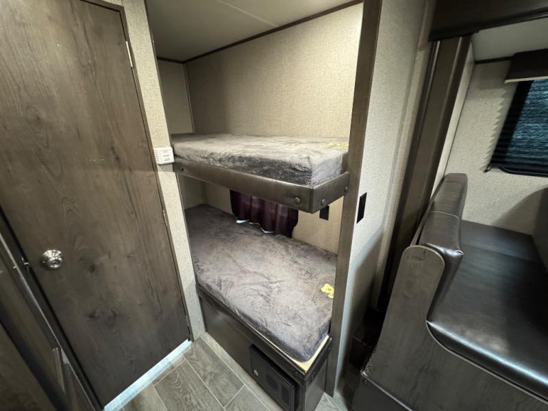 This Jay Flight SLX 7 travel trailer is similar to model 174BH, but it includes a slide out for more interior space. The bunk beds include 4"-thick bunk mats for comfort, and the front queen bed includes a privacy curtain for your own space. Easily prepare your meals on the two-burner cooktop, or use the convenient microwave oven. This mode includes a private bathroom so that you don't have to use the camp's facilities, plus you'll find plenty of storage, including overhead compartments, a pantry, and outside storage!