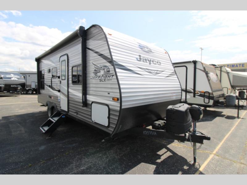 Enjoy family time with lots of room to stretch out in any one of these Jayco Jay Flight SLX 8 travel trailers! Jayco uses the top-quality materials and innovative manufacturing techniques to create the Magnum Truss Roof System for a 50% stronger roof than any other in the industry. The screwed construction creates a more firmly secured structure and the 2" x 2" vertical studs provide smoother edges for safer wiring to reduce the risk of electrical shorts. Each model comes with the mandatory Customer Value Package which includes extra luxurious features like the three burner range, Keyed-Alike™ entry and baggage doors, the outside shower, the JaySMART™ LED lighting, and the bedspread. The Goodyear® Endurance® tires, the front diamond plate, and the axles with electric, self adjusting brakes and galvanized steel impact resistant wheel wells ensure you will arrive safely to each destination. Come see just how comfortable these travel trailers are!