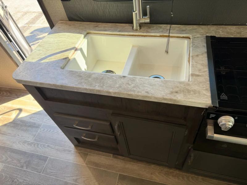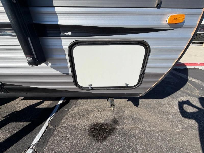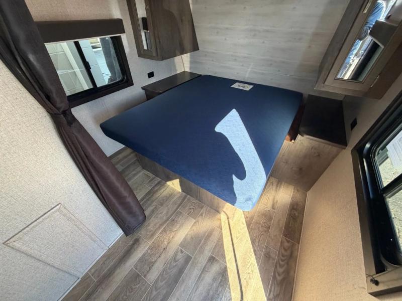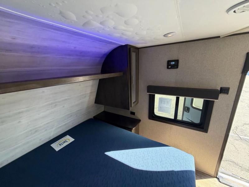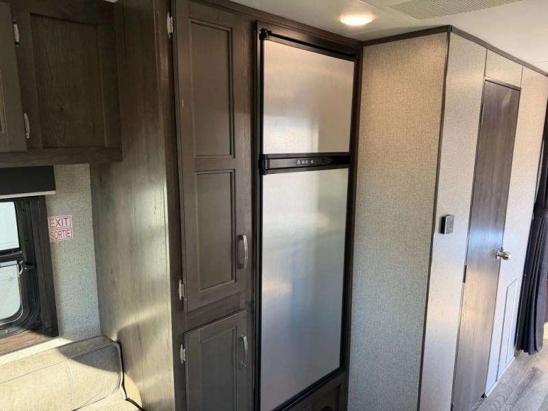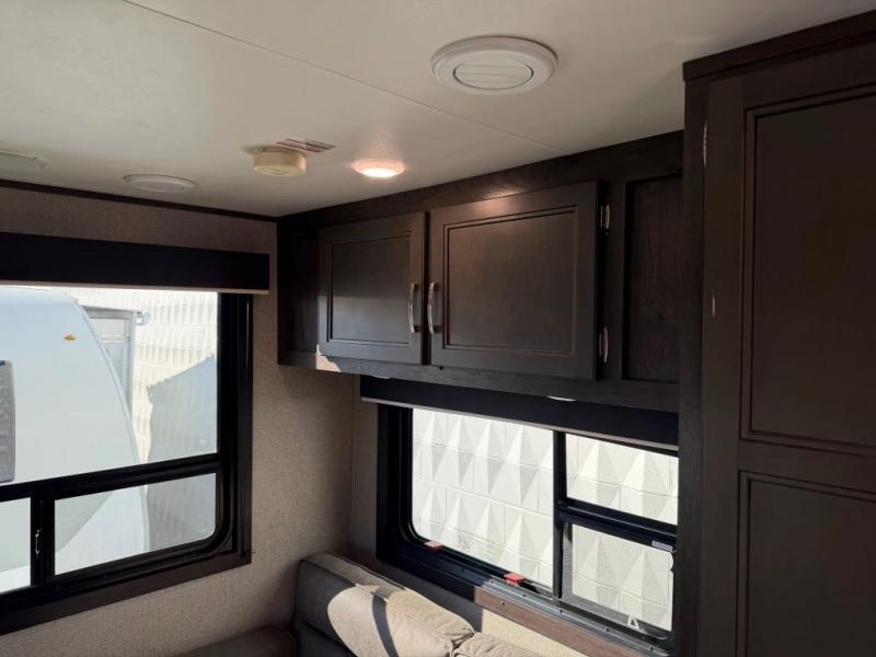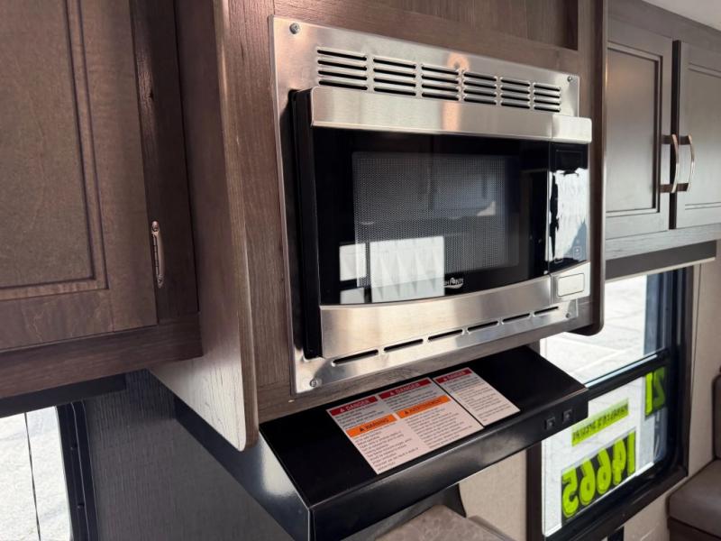 If you and your spouse wish to escape the hustle and bustle of everyday life then you need this travel trailer! You can create delicious home cooked meals with the three burner range with glass cover, and enjoy eating them comfortably at the booth dinette. The dinette and sofa can also double as extra sleeping spaces for a few to tag along and join in on the fun. Start each morning feeling refreshed and clean after sleeping on the front island queen bed and taking a nice, hot shower in the tub/shower which also has skylight above it for you to have natural lighting as you get ready!