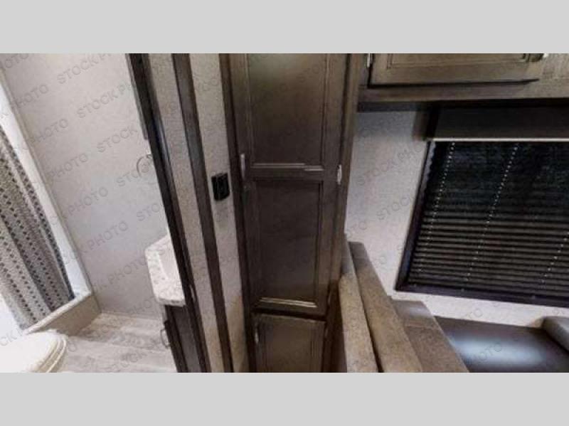 Don't go on another camping trip without taking this travel trailer! There is an island queen bed up front with wardrobes on either side to keep your clothes looking nice and a privacy curtain to draw at night. The kids will enjoy sleeping on the rear double bunk beds and they can even bring a friend along too, just convert the booth dinette into a sleeping space for them. The spacious rear corner bathroom comes with a large shower for you to enjoy a nice, hot shower every morning. If you don't feel like cooking dinner indoors then head to the outside kitchen to breathe in some fresh air and watch the kids playing!