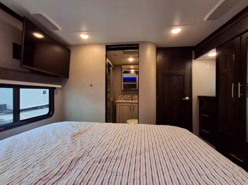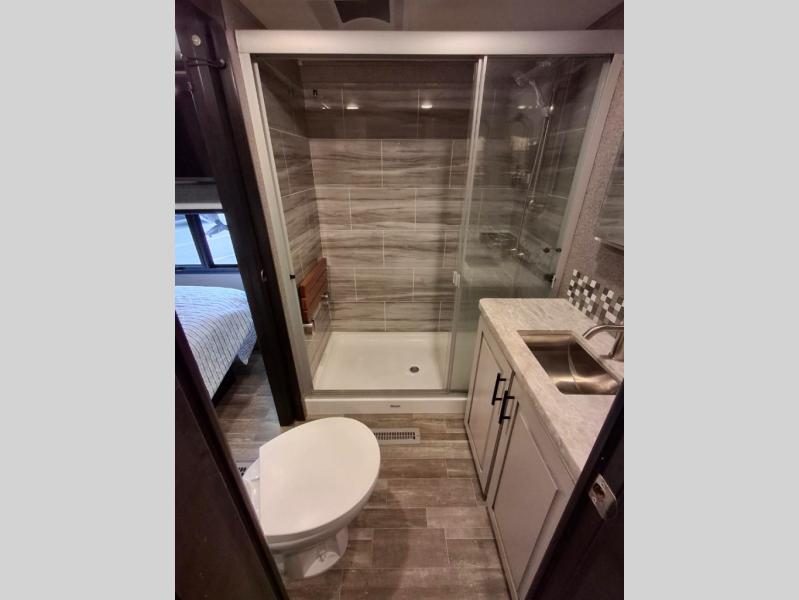 With each Seismic toy hauler by Jayco you will appreciate the 5-Star Handling Package which includes MORryde CRE-3000 rubberized suspension, 7,000 lb. Dexter axles with Nev-R-Adjust brakes, plus Goodyear Endurance tires for smooth towing wherever the road takes you. The equalizer hydraulic 6-point auto-leveling system, LED high-intensity ramp lights, and fully enclosed, LED-lit Nautilus universal docking center will make set-up a breeze once you arrive at your destination. These toy haulers feature Shaw vinyl flooring, solid hardwood slide fascia, a stainless steel sink, plus many more interior comforts to make you feel right at home. The central vacuum system will easily clean up the dirt from your afternoon ride, and the dual USB charging ports will allow you to charge your tablet or phone with ease. For luxury camping with your favorite ride-on toys, the Seismic toy haulers by Jayco are the way to go!